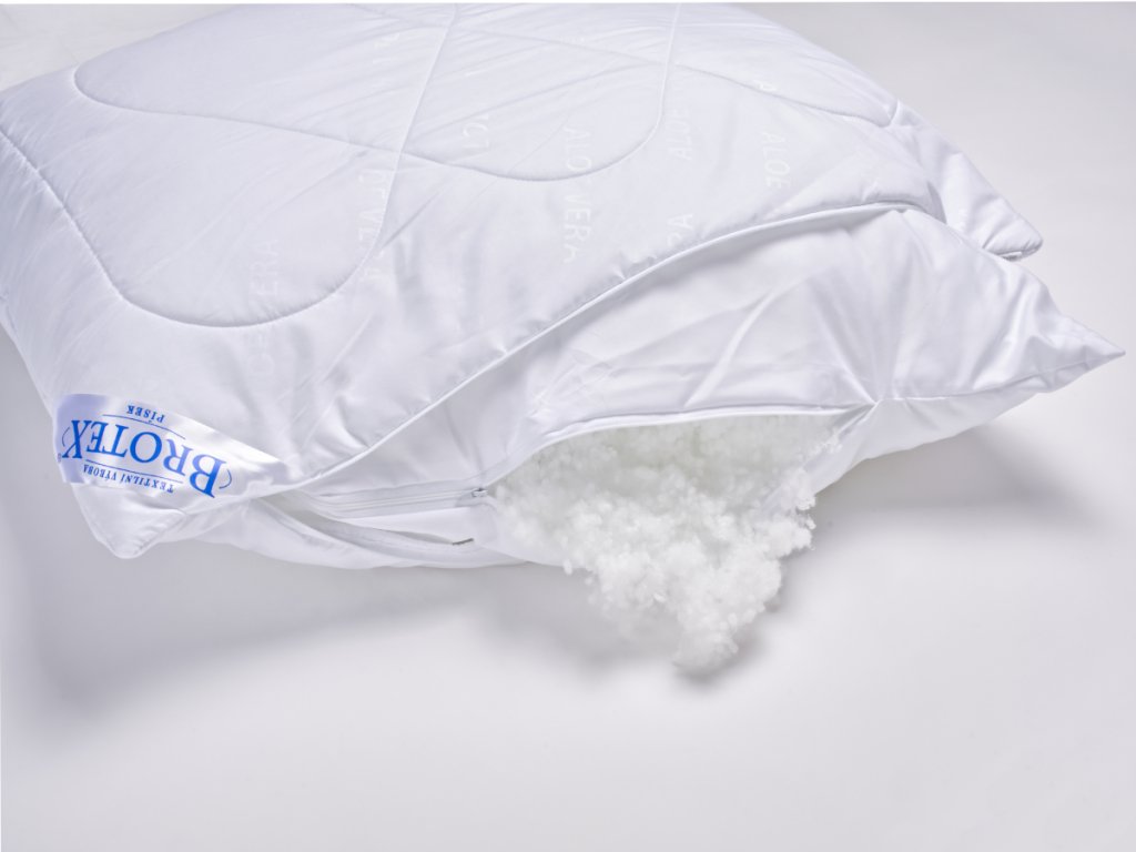 Tento polštář obsahuje vysoce kvalitní značkové kuličkové duté vlákno UNICO, které je určeno specielně pro výrobu protialergických polštářů. Polštáře se díky těmto kvalitním kuličkám dají snadno naklepat a nemění tvar. Kuličkové duté vlákno je uvnitř samostatného povlaku se zipem, který je vložen do prošitého korpusu také se zipem. Jedná se o velmi praktický výrobek, kdy je možnost samostatného vyprání korpusu bez výplně, která se díky povlaku navíc, snadno z korpusu polštáře vyjme. Oba povlaky jsou opatřeny zipovým uzávěrem, pro možnost doplnění či odebrání části výplně dle potřeby zákazníka. Povrchovým materiálem je 100% polyester - mikrovlákno s výtažky z rostliny Aloe Vera. Aloe Vera příznivě působí na lidskou pokožku, má schopnost zmírňovat bolesti kloubů a svalů. Během užívání postupně uvolňuje extrakty ze svých vláken, které mají výrazný antibakteriální efekt, tudíž bezpečně zaručí hubení bakterií a roztočů. Přispívá k uvolnění těla, relaxaci a ničím nerušenému klidnému spánku. Polštář je vhodný pro alergiky a astmatiky.