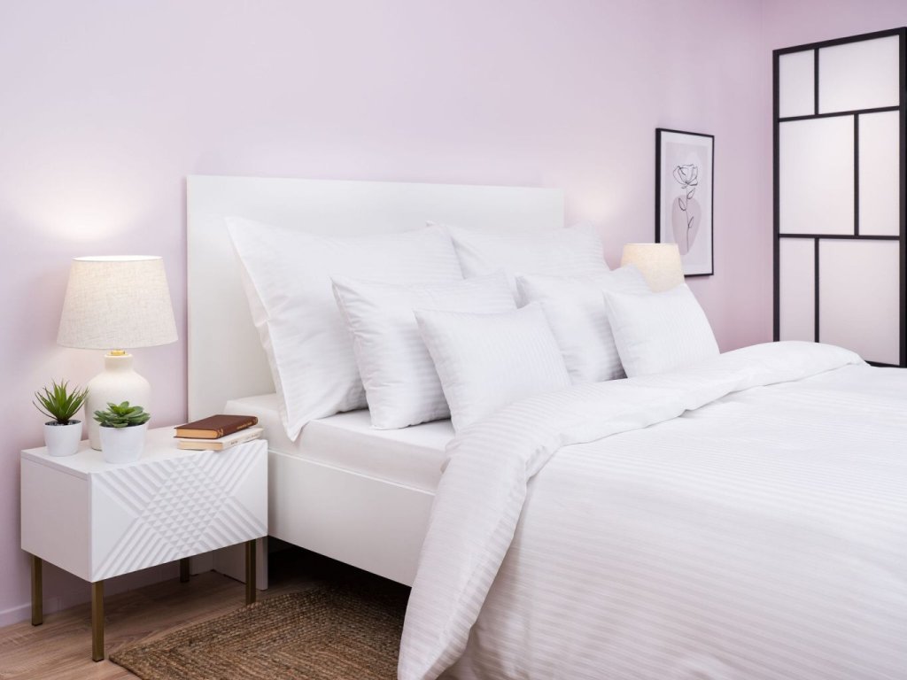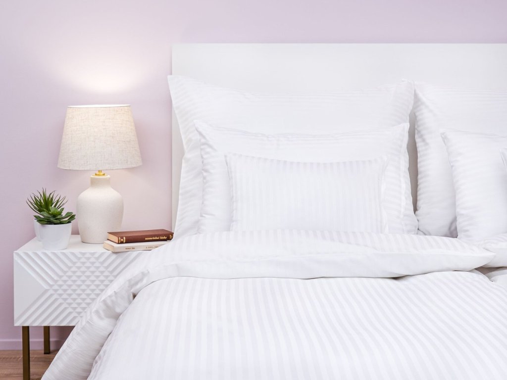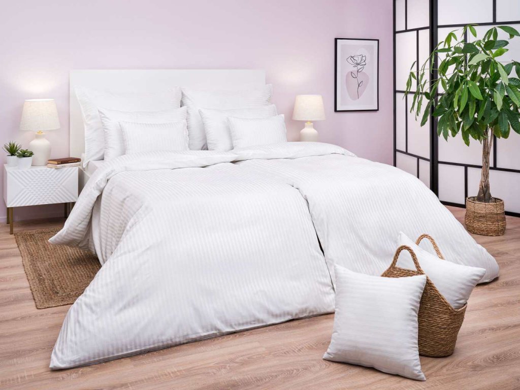 Povlečení s atlas grádlovou vazbou v bílé barvě s proužky 0,8 cm.