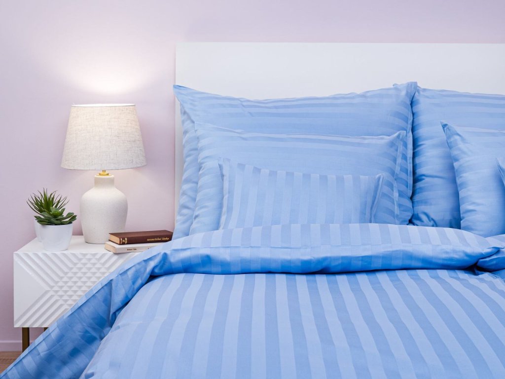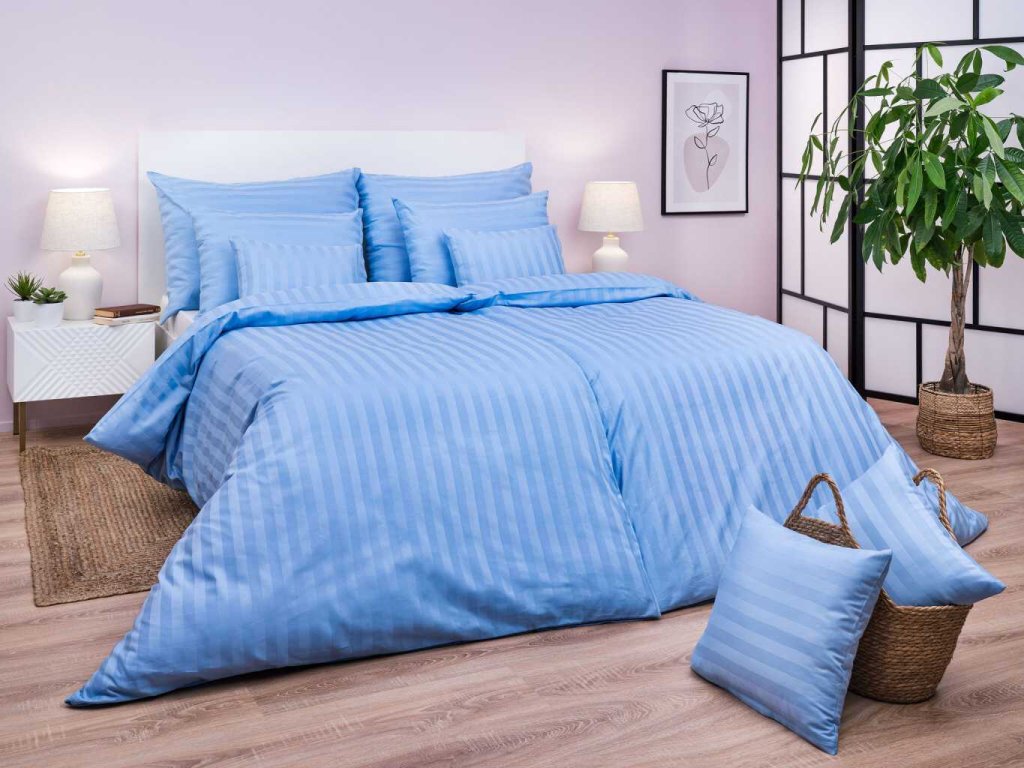 Povlečení atlas grádl modrý proužek 2,5 cm 140x200, 70x90 cm