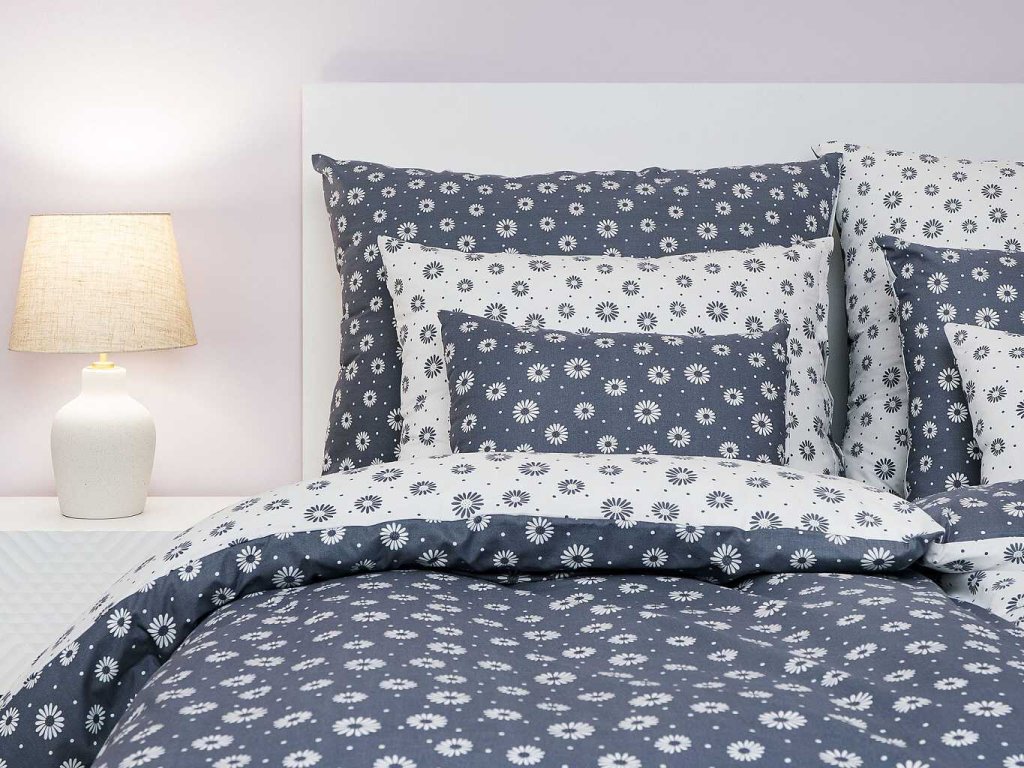 Elegantní ložní prádlo s jemným květinovým vzorem v kombinaci bílé a tmavě šedé barvy přinese do vaší ložnice kontrastní harmonii a nadčasový styl. Vzor Anežka bílá/tmavě šedá DUO je originálním oboustranným designem od českého výrobce DADKA VRACOV. Doporučujeme kombinovat s prostěradly v barvě bílá nebo tmavě šedá.