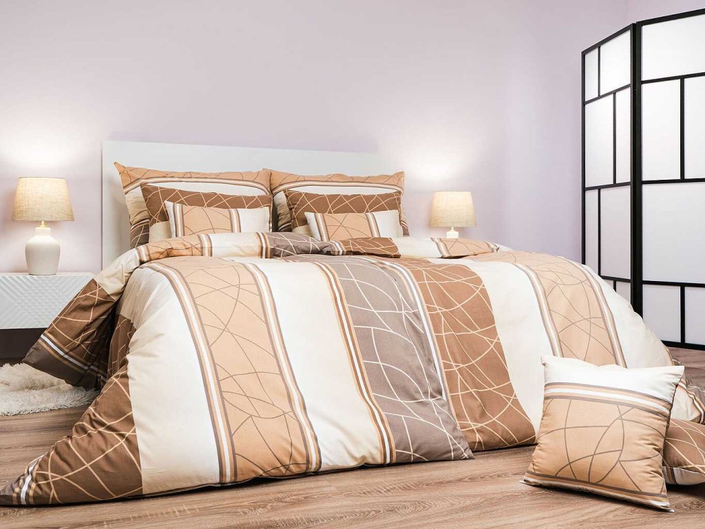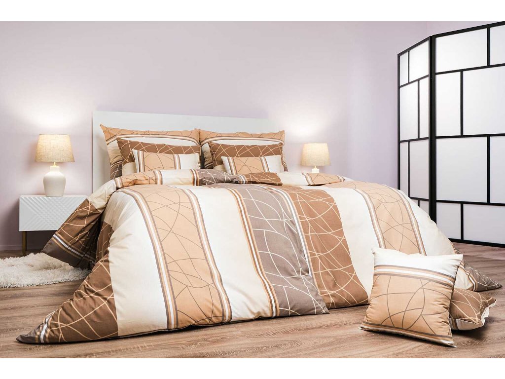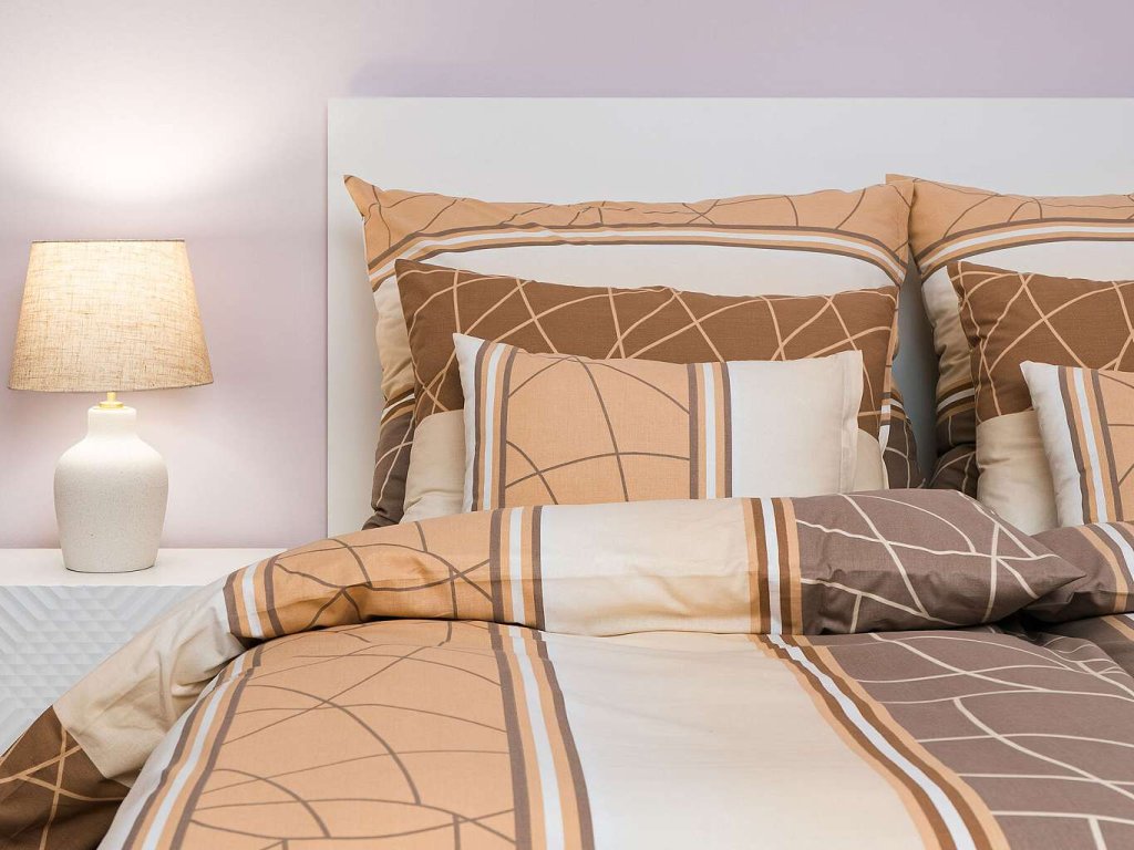 Moderní ložní prádlo s geometrickým vzorem Bruno opál v odstínech béžové a bílé přináší do ložnice decentní eleganci a klid. Vzor tvoří jemné linie a pruhy, které působí harmonicky a nadčasově. Povlečení doporučujeme kombinovat s prostěradly v barvě opálová, medová, banánová nebo bílá. Vyrobeno v České republice firmou DADKA VRACOV.