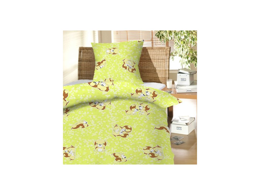 Povlečení bavlna do postýlky Štěně zelené 90x130, 45x60 cm