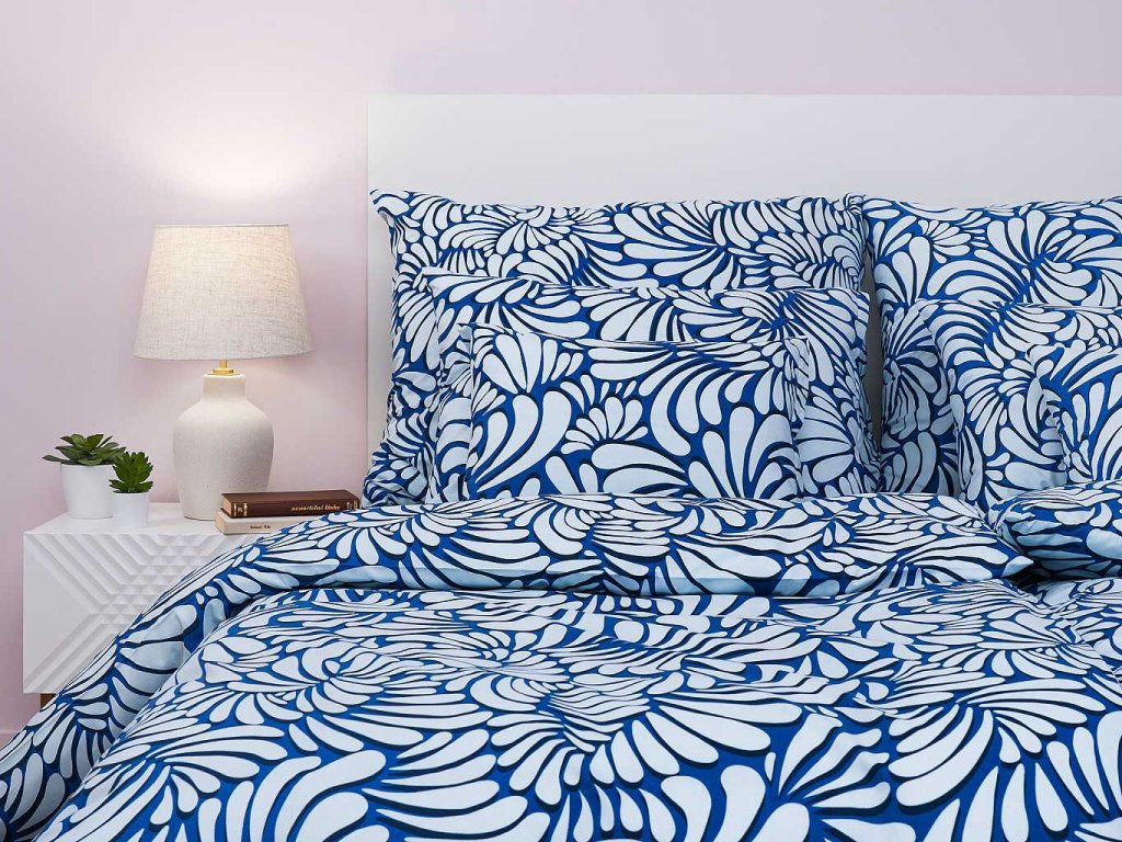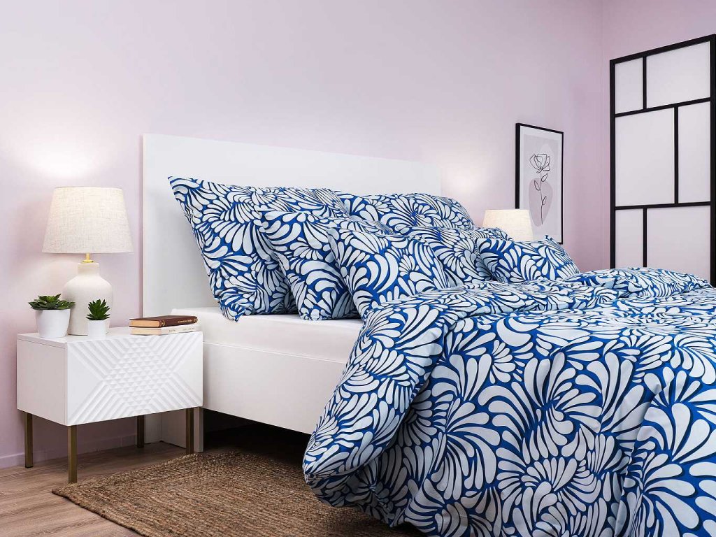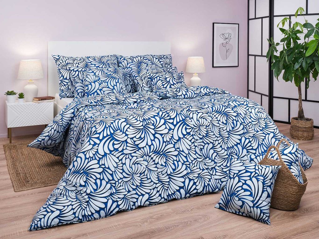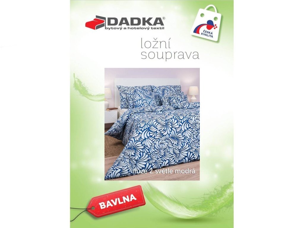 Moderní ložní prádlo Iluze 2 světle modrá zaujme světlým modrým základem s jemným světle modrým abstraktním vzorem připomínajícím květinové či listové motivy. Skvěle se hodí do moderních i klasických interiérů. Vyrobeno v České republice firmou DADKA VRACOV. Doporučujeme kombinovat s prostěradlem v barvě světle modré, bílé nebo královská modř.