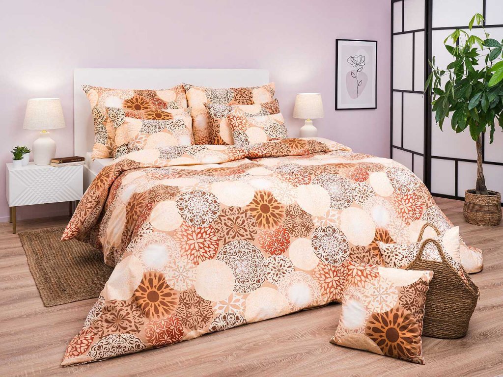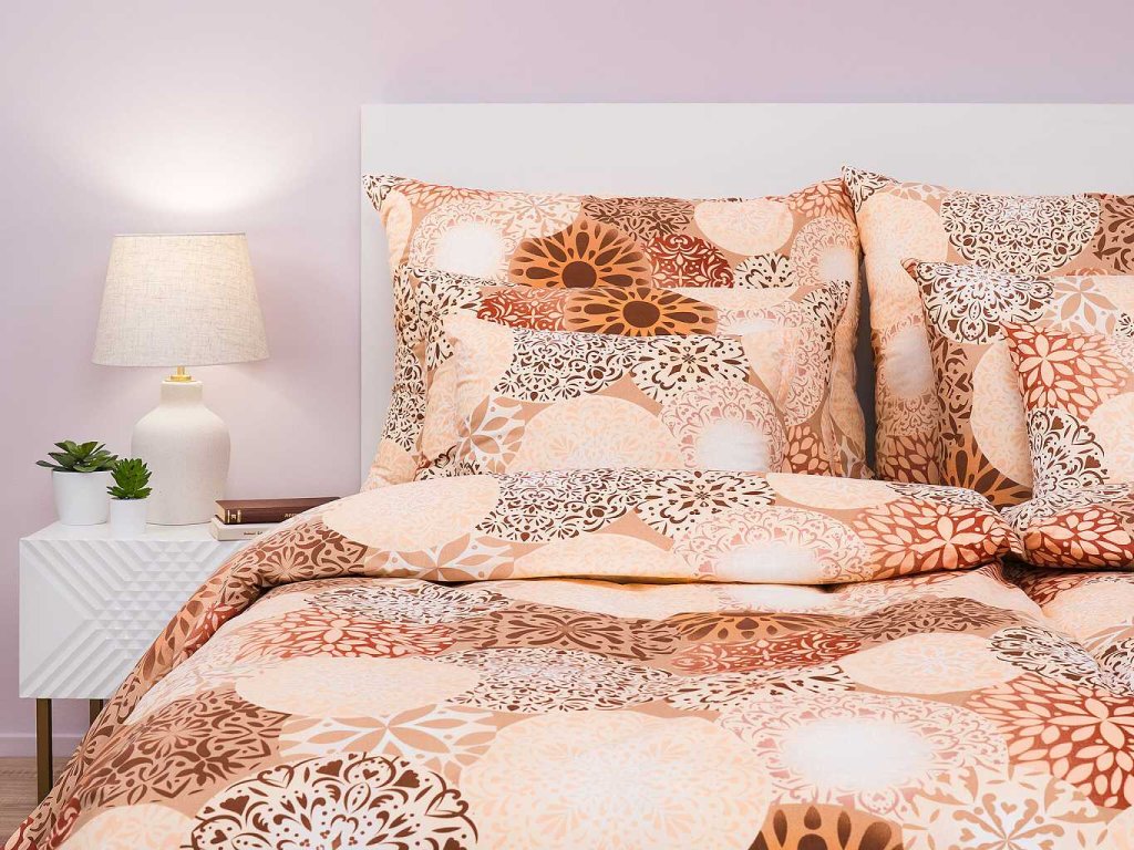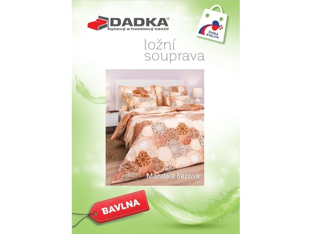 Stylové ložní prádlo Mandala béžová přináší do vaší ložnice pocit klidu a rovnováhy. Tento harmonický design doporučujeme kombinovat s prostěradly v medové, banánové, nugátové nebo světle hnědé barvě. Vyrobeno v České republice firmou DADKA VRACOV.