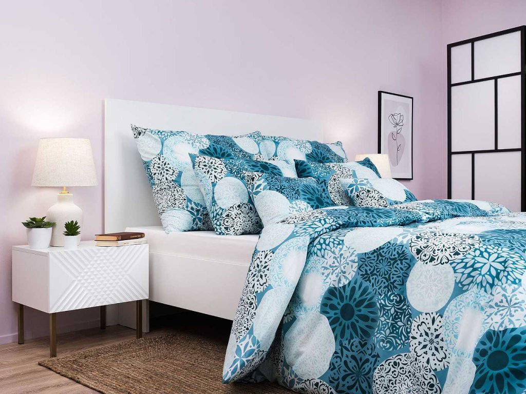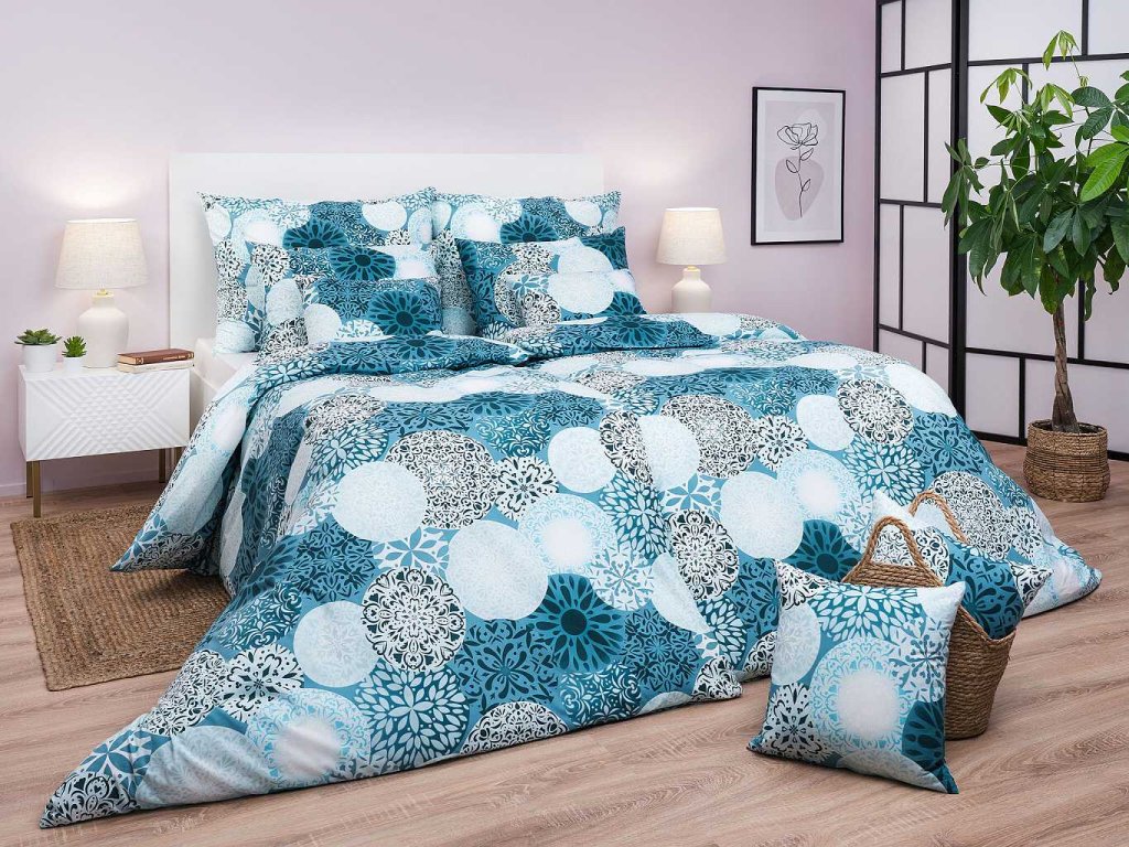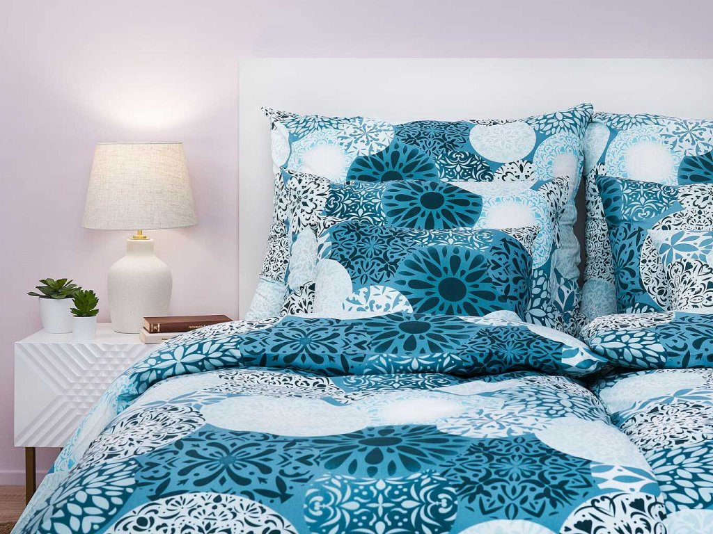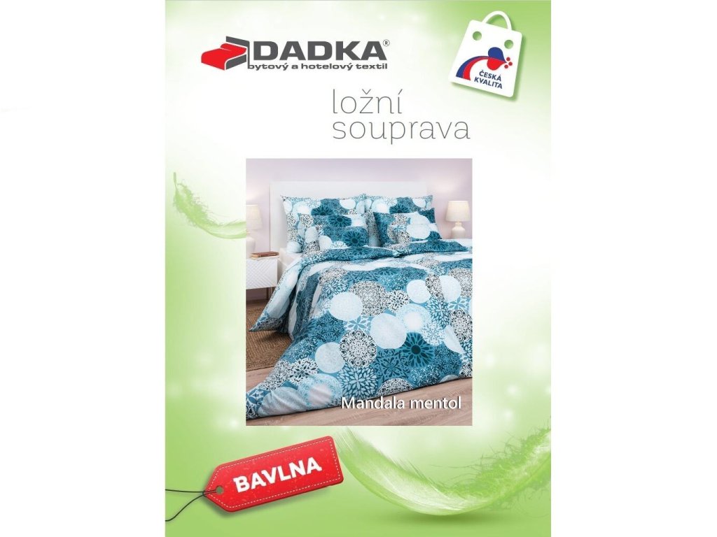 Moderní ložní prádlo Mandala mentol zaujme mentolovým základem s jemným vzorem mandal, které navozují pocit klidu a rovnováhy. Skvěle se hodí do moderních i boho interiérů. Vyrobeno v České republice firmou DADKA VRACOV. Doporučujeme kombinovat s prostěradlem v barvě mentolové, bílé nebo šedé.
