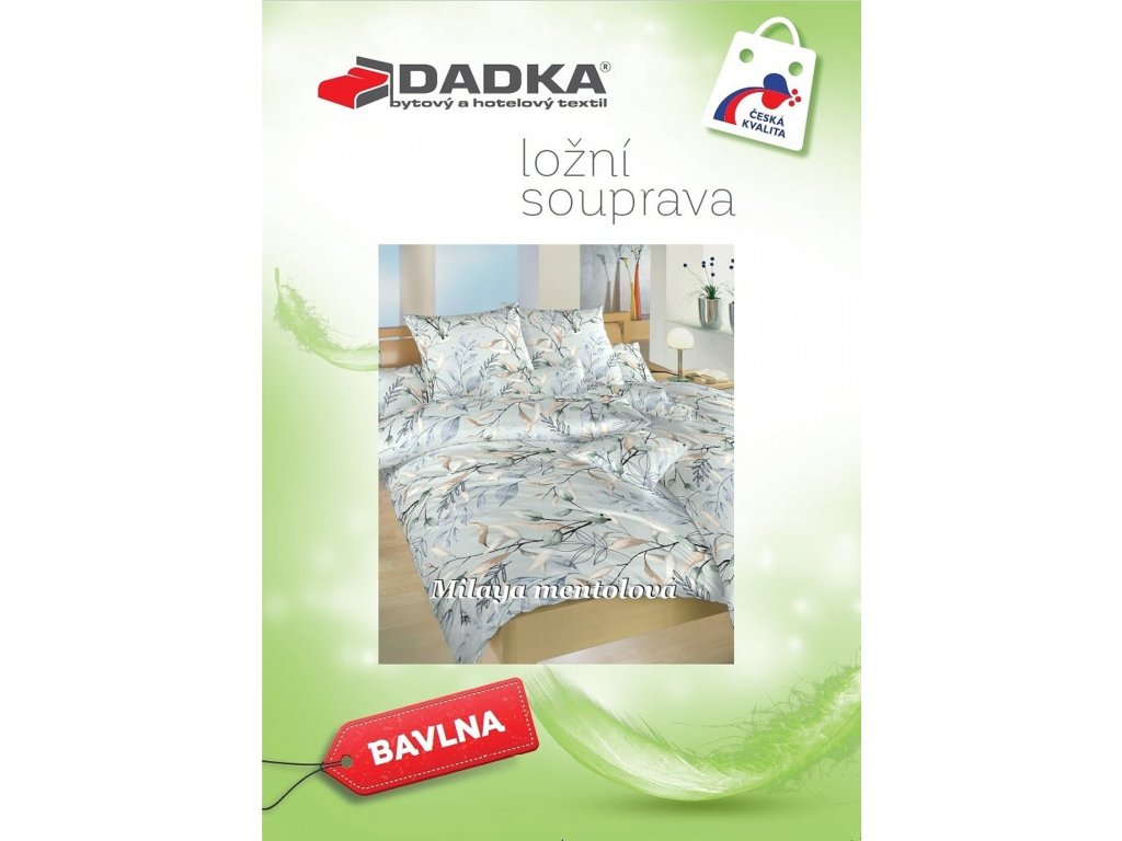 Elegantní ložní prádlo s přírodním motivem Milaya mentol v odstínech mentolové, světle modré a béžové na světlém podkladu přináší do ložnice svěžest a klid. Jemný vzor listů a větviček působí vzdušně a harmonicky. Povlečení doporučujeme kombinovat s prostěradly v barvě mentolová, banánová, denim nebo béžová. Vyrobeno v České republice firmou DADKA VRACOV.