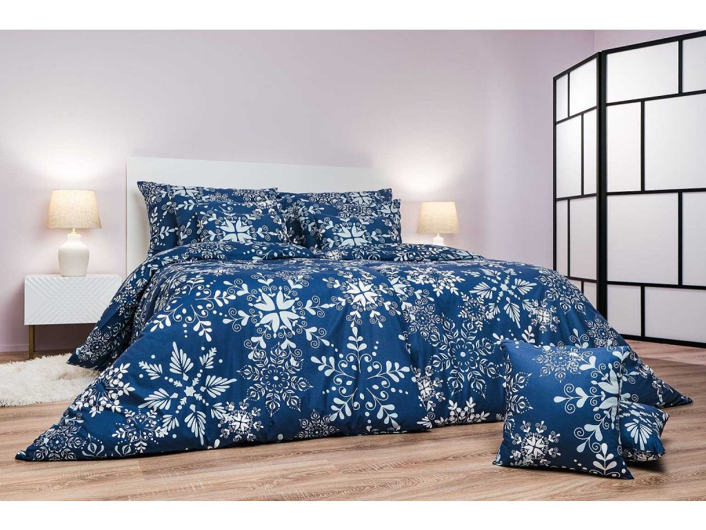 Povlečení bavlna Snowflakes tmavě modré 240x220, 2x70x90 cm