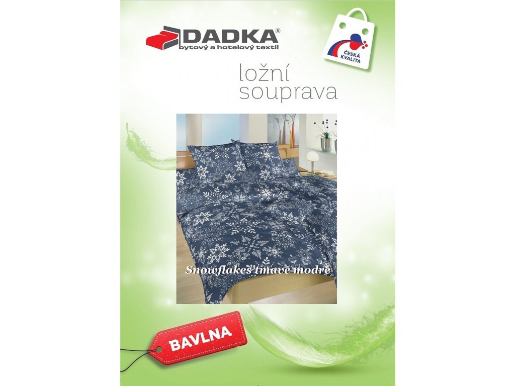 Stylové ložní prádlo Snowflakes tmavě modré s motivem bílých sněhových vloček na tmavě modrém podkladu přináší do ložnice zimní atmosféru a elegantní kontrast. Nejlépe vynikne v kombinaci s prostěradlem v barvě bílá. Vyrobeno v České republice firmou DADKA VRACOV.