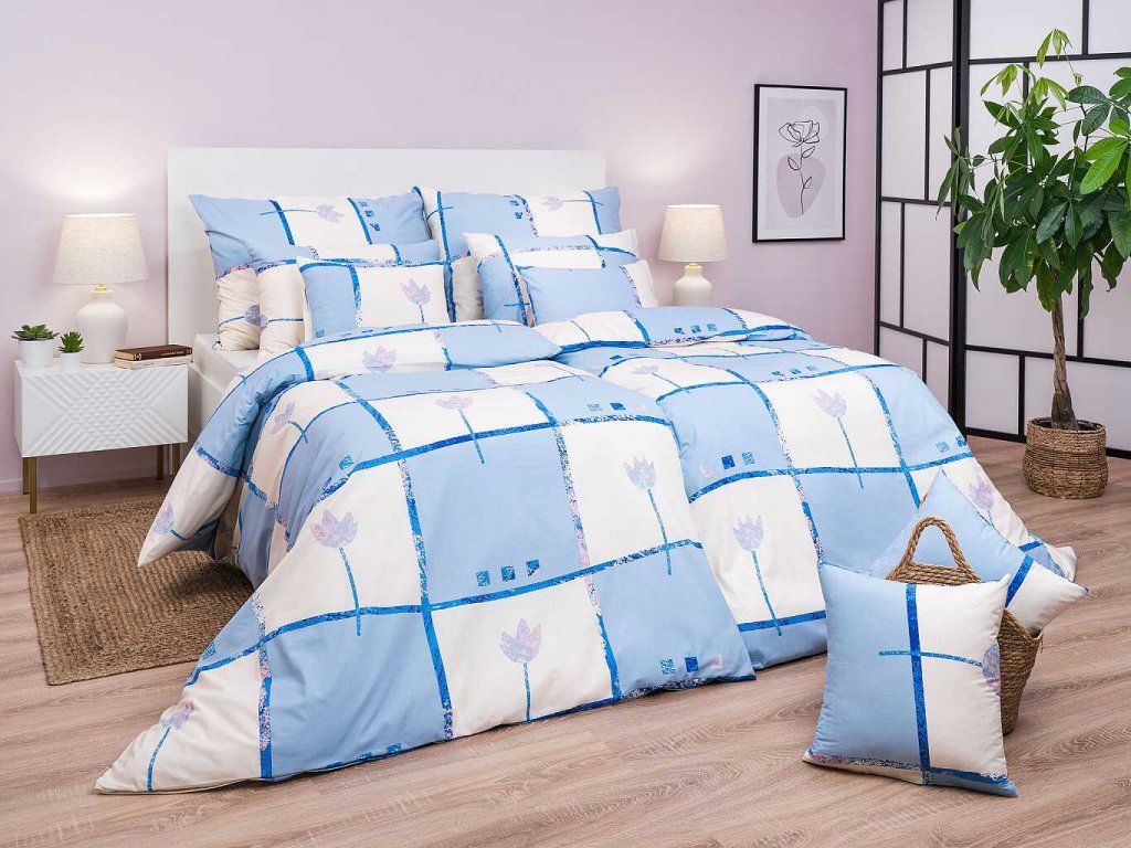 Povlečení bavlna Tulipán světle modrý 240x200, 2x 70x90 cm