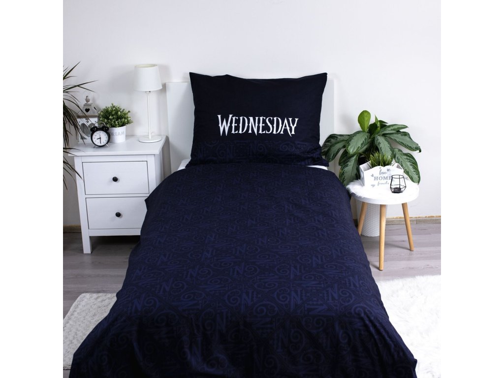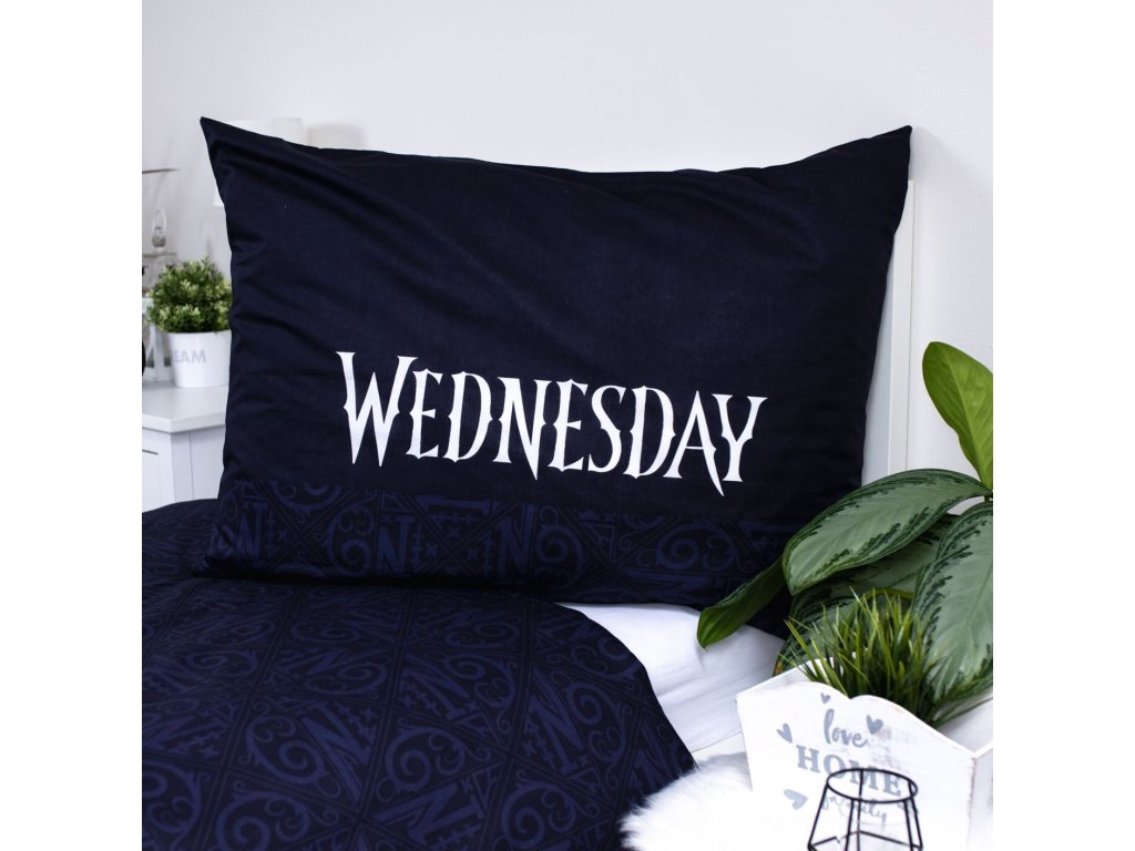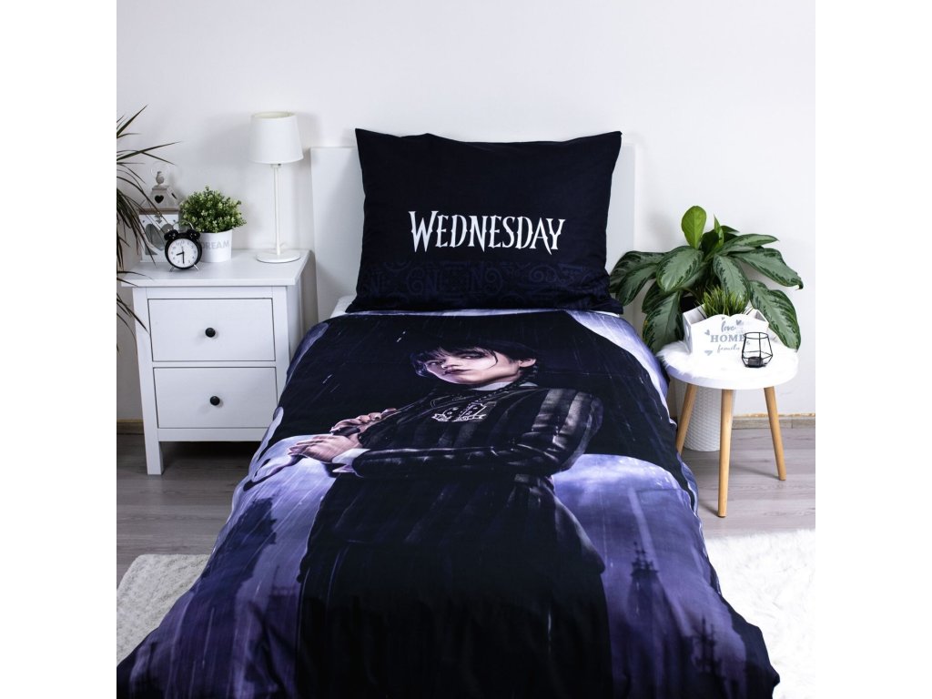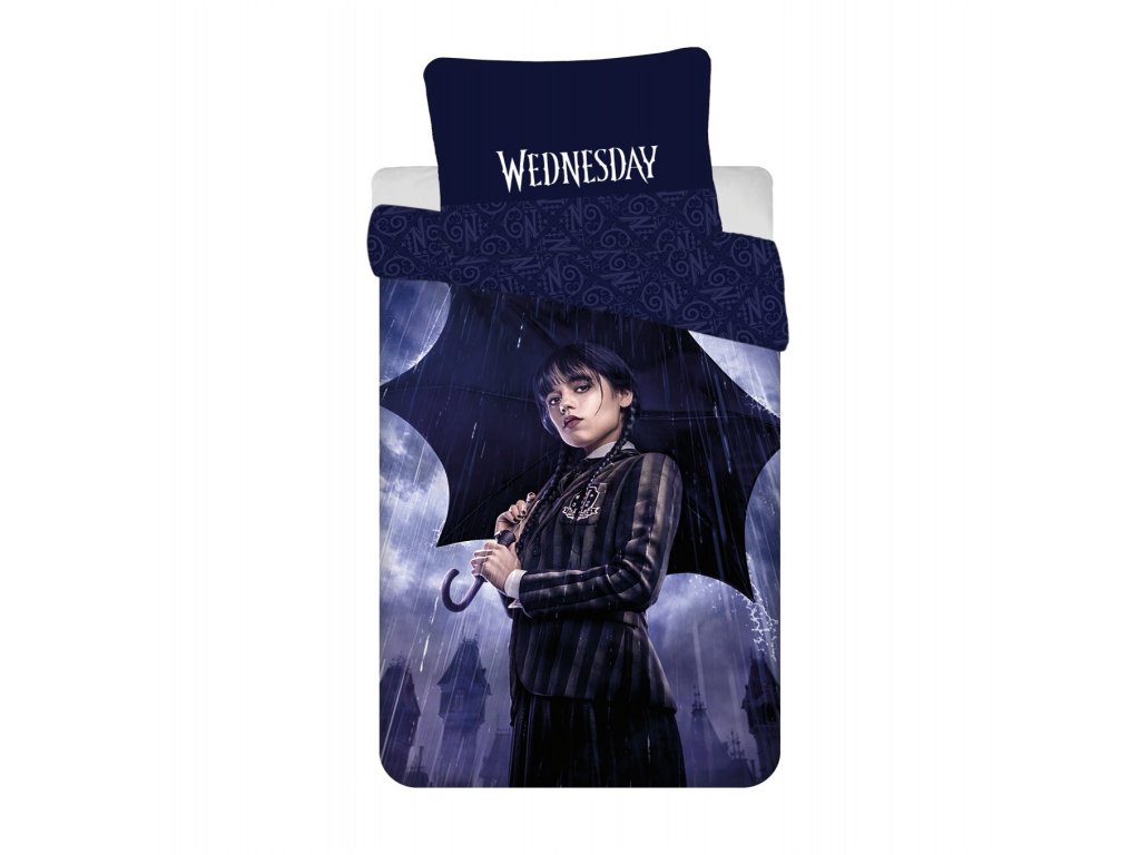 Vstupte do tajemného světa Wednesday s tímto stylovým povlečením Wednesday Rain! Design zaujme tmavým pozadím s deštěm a ilustrací hlavní postavy držící deštník. Na přikrývce i polštáři je nápis „Wednesday“, který podtrhuje jedinečný charakter tohoto povlečení.
