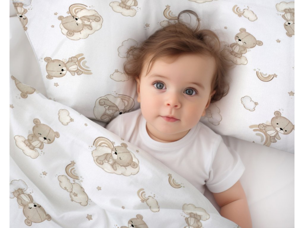 Povlečení do postýlky, bavlna, 2D sada, Malý Medvídek - bílá s potiskem