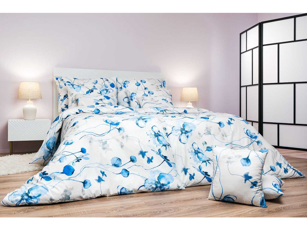 - jemný květinový motiv v modrých tónech