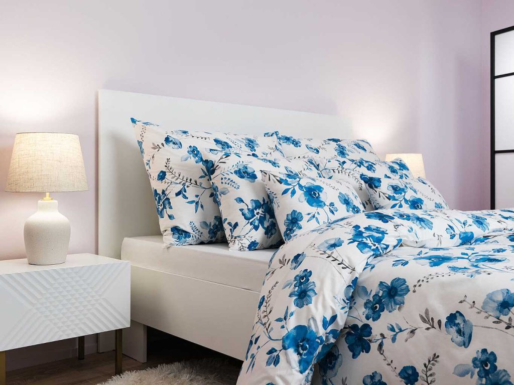 Obsah balení: 1x polštář o rozměru 70x90 cm a 1x povlak na přikrývku o rozměru 140x220 cm.Dezén: Kvítí modré na bílém.