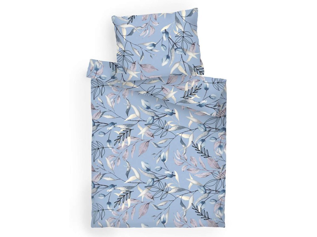 Hřejivé flanelové ložní prádlo Milaya modrá s elegantním přírodním vzorem v modrých, růžových a šedých tónech přináší do ložnice pohodlí a moderní styl. Skvěle se hodí k prostěradlům v barvě královsky modré, denim, banán, bílé, béžové nebo tmavě šedé. Vyrobeno v České republice firmou DADKA VRACOV.