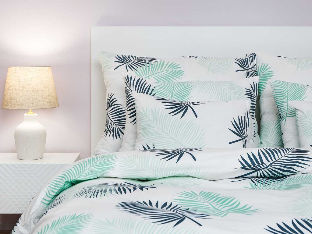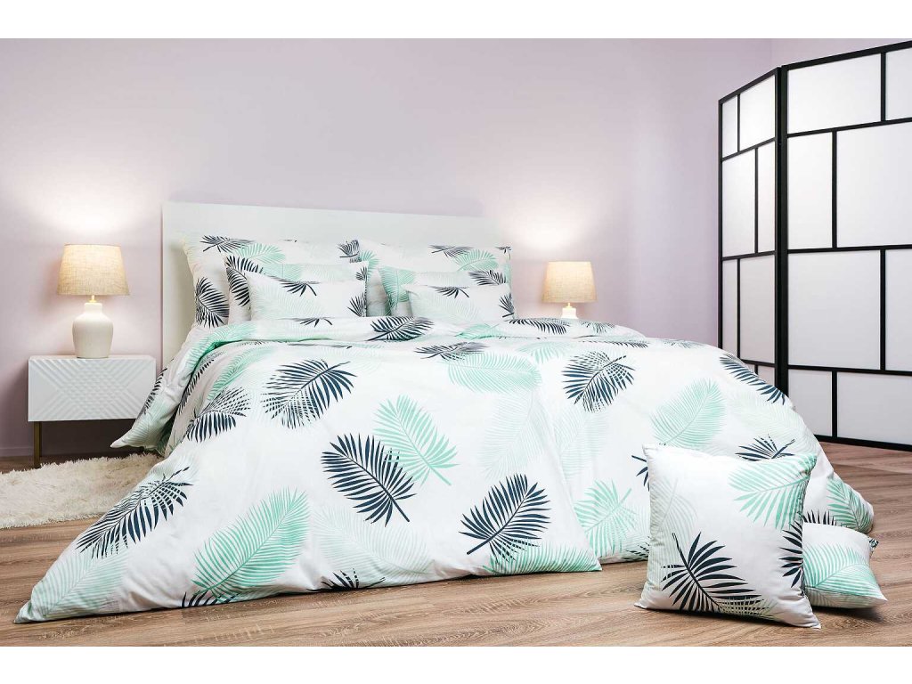 Hřejivé flanelové ložní prádlo Peříčka mentolová s moderním motivem jemných listů v mentolových a šedých tónech na bílém podkladu přináší do ložnice pohodlí a útulnost. Skvěle se hodí k prostěradlům v barvě bílé, mentolové nebo tmavě šedé. Vyrobeno v České republice firmou DADKA VRACOV.