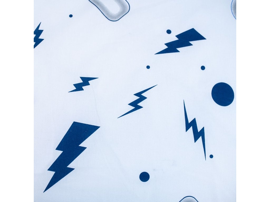 Vstupte do světa herních dobrodružství s povlečením Game Over! Stylový design s modrým herním ovladačem na tmavě modrém pozadí, doplněný bílými geometrickými prvky a blesky, přináší do každého pokoje energii, napětí a moderní atmosféru. Neonově modrý nápis „GAME OVER“ a otázka „PLAY AGAIN?“ dodávají celému setu hravý a originální vzhled, který potěší každého hráče.