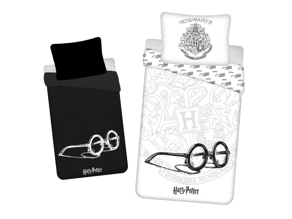 Toto povlečení je perfektním dárkem pro každého fanouška kouzelnického světa – ať už čekáte na dopis z Bradavic, nebo si jen chcete užít noc plnou magie. Přikrývku zdobí oboustranný design – černá strana s ikonickými brýlemi a nápisem Harry Potter, bílá strana s jemným vzorem a velkým erbem Bradavic. Polštář je laděn do bílé barvy s černým erbem a nápisem HOGWARTS.