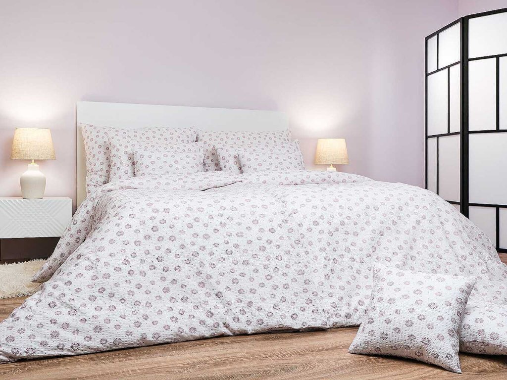 Povlečení krep Anežka pudrová na bílém 140x200, 70x90 cm