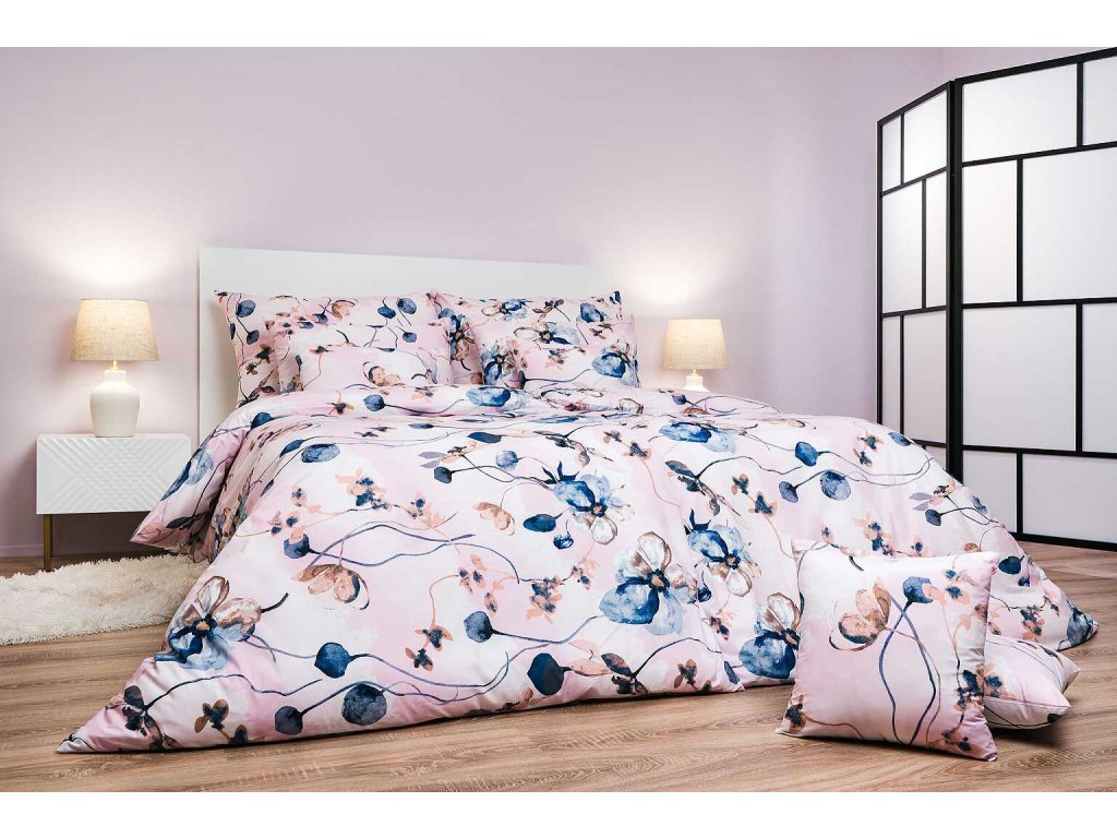 Luxusní ložní prádlo Bloom elegance pudrová s moderním květinovým motivem v modrých tónech na jemně pudrovém podkladu přináší do ložnice eleganci a svěžest. Nejlépe vynikne v kombinaci s prostěradlem v barvě bílá, pudrová nebo opál. Vyrobeno v České republice firmou DADKA VRACOV.