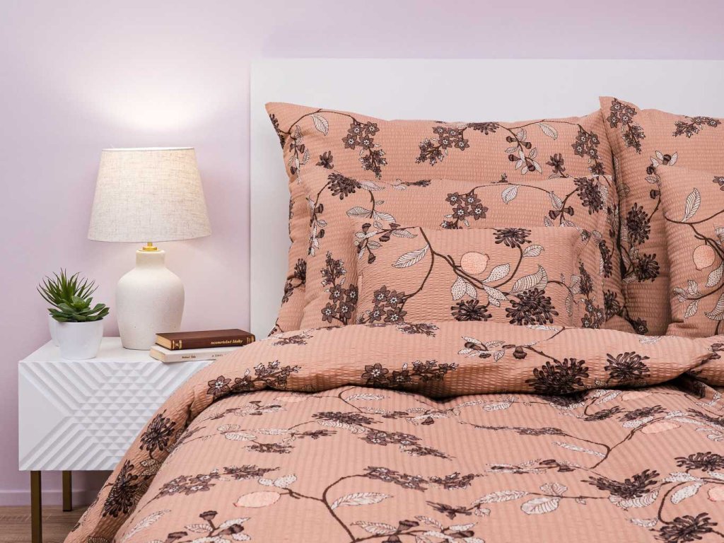 Elegantní ložní prádlo Klaudie světle hnědá s decentním květinovým motivem v přírodních tónech přináší do ložnice harmonii a útulnost. Nejlépe vynikne v kombinaci s prostěradlem v barvě tmavě hnědá, medová nebo banán. Vyrobeno v České republice firmou DADKA VRACOV.