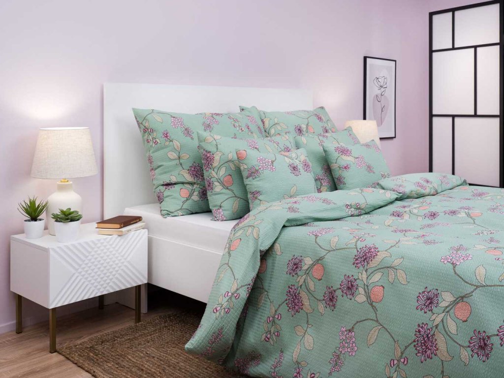 Elegantní ložní prádlo Klaudie zelená s jemným květinovým motivem v zeleném odstínu přináší do ložnice svěžest a klidnou atmosféru. Nejlépe vynikne v kombinaci s prostěradlem v barvě banánová, mentolová, pudrová nebo medová. Vyrobeno v České republice firmou DADKA VRACOV.