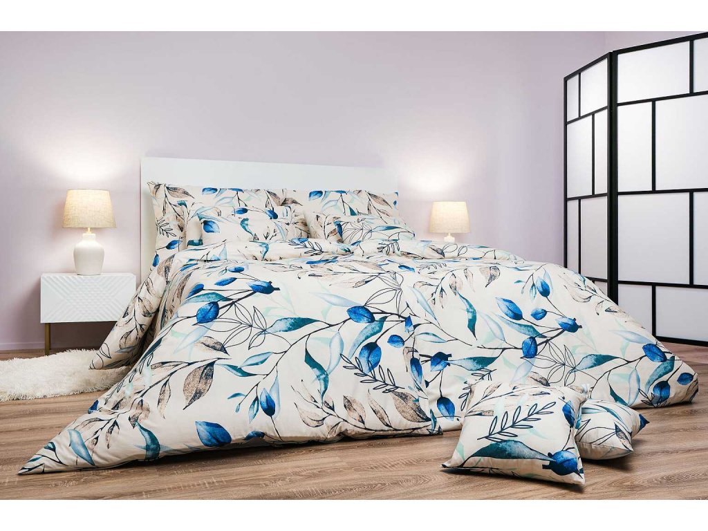 Luxusní ložní prádlo Milaya banán s moderním přírodním motivem v modrých a béžových tónech na světlém podkladu přináší do ložnice eleganci a svěžest. Nejlépe vynikne v kombinaci s prostěradlem v barvě královsky modré, denim, banán, světle hnědé, mentol nebo opál. Vyrobeno v České republice firmou DADKA VRACOV.