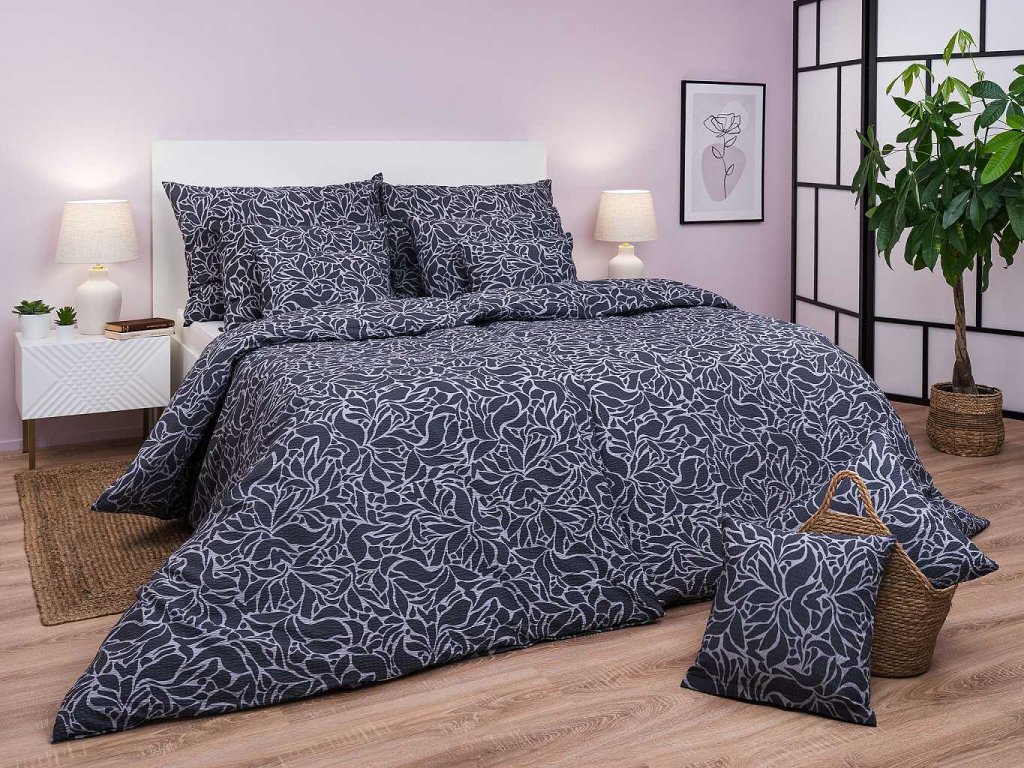 Elegantní krepové povlečení Sorat tmavě šedý s decentním vzorem v tmavě šedé barvě je ideální volbou pro každého, kdo ocení pohodlí bez nutnosti žehlení. Snadno jej sladíte s prostěradly v barvě bílá, světle šedá, tmavě šedá, stříbrná a banán. Český výrobek z dílny DADKA VRACOV.