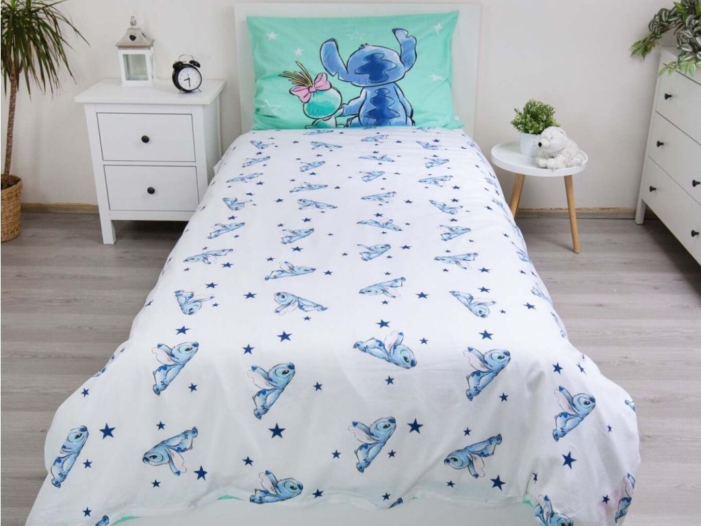 Roztomilé povlečení s motivem Stitche a panenky Scrump na světle zeleném pozadí s hvězdičkami rozzáří každý dětský pokojíček. Vyrobeno ze 100% bavlny, příjemné na dotek, se zapínáním na zip.
