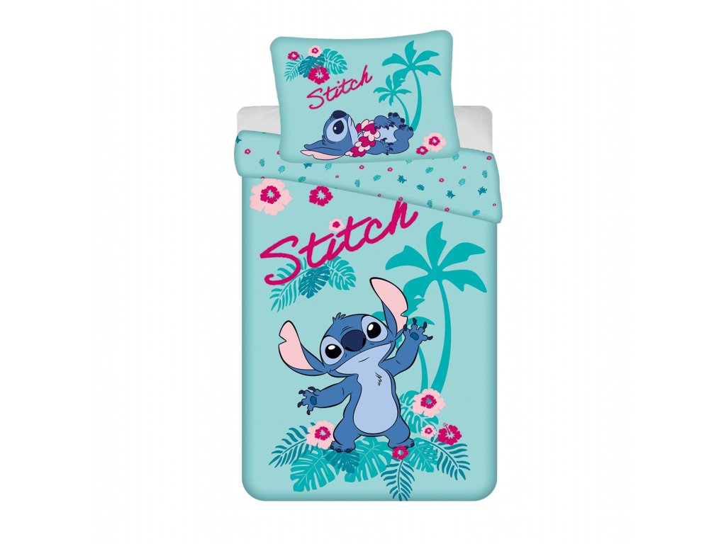 Vneste do dětského pokojíčku tropickou pohodu s povlečením Lilo a Stitch Hawaii! Světle modrozelené pozadí s veselým motivem Stitche, zelenými palmami, růžovými květy a nápisem "Stitch" rozzáří každou postýlku.