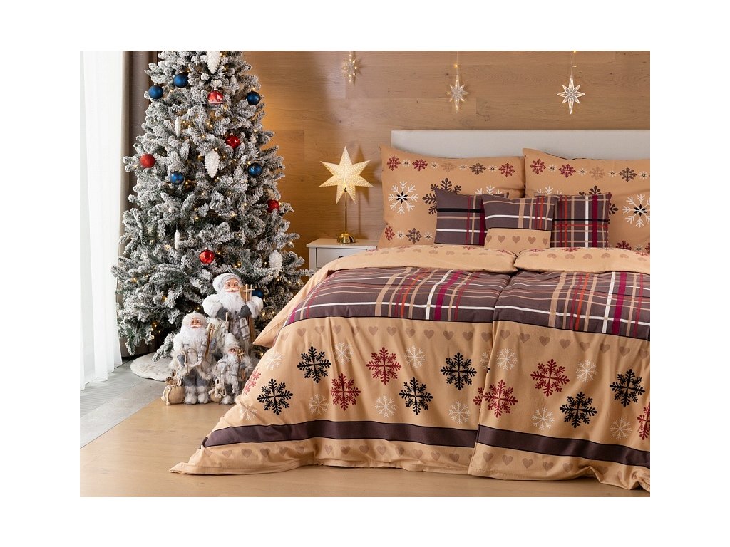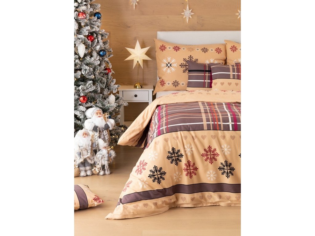 Atraktivní vánoční vzor v hřejivých tónech lískooříškové a nugátově hnědé přináší ložní povlečení Tinsel. Díky nápaditému spojení motivů můžete při stlaní každý den experimentovat a vychutnávat si sváteční atmosféru.