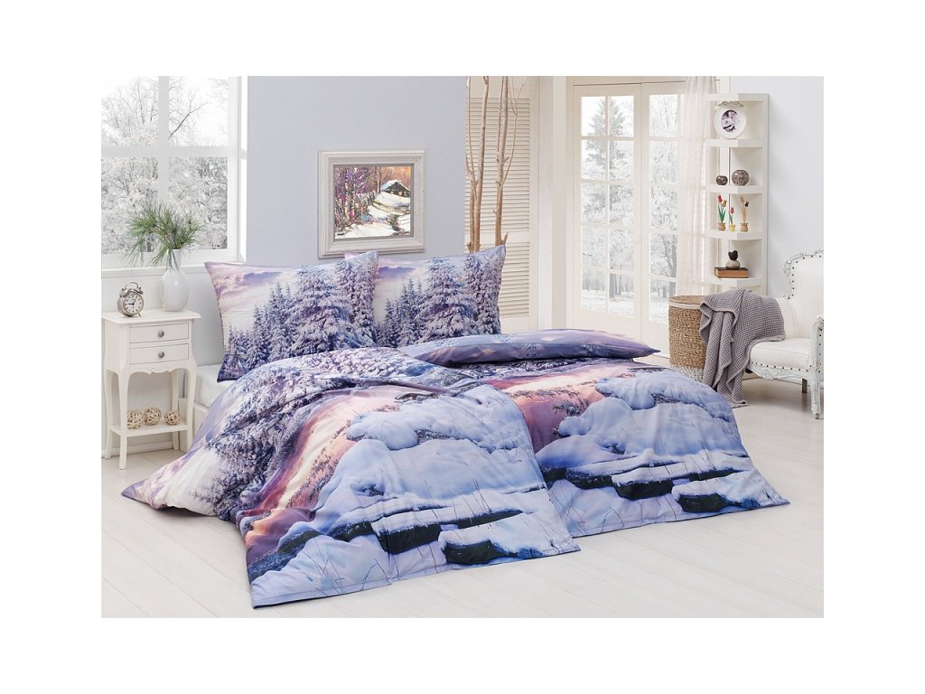 Pohled na romantickou zasněženou krajinu na povlečení Dreaming vás pohladí na duši. Okouzlující chladivé modrobílé tóny se snoubí s fialovooranžovým odleskem na vodní hladině. Díky nejmodernějšímu digitálnímu tisku si vychutnáte jedinečnou autenticitu zimní scenérie.Povlak na polštář i na přikrývku je z obou stran stejný. Povlečení je opatřeno komfortním zipovým uzávěrem.