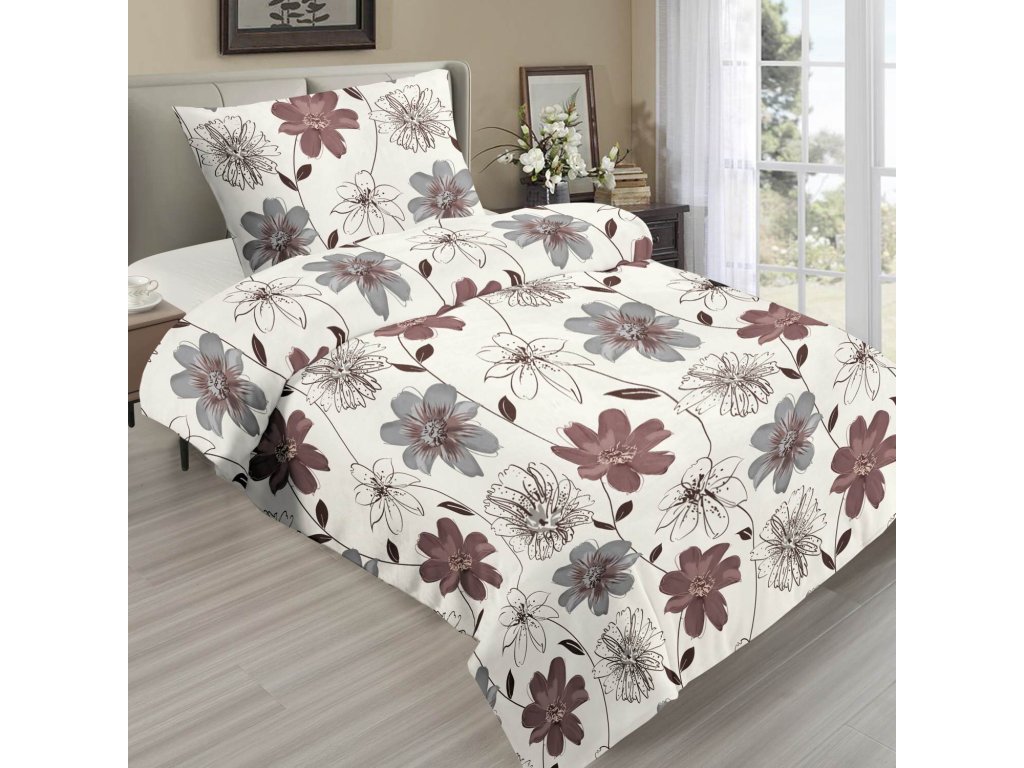 Povlečení mikroflanel Hnědá kytka 140x200, 70x90 cm