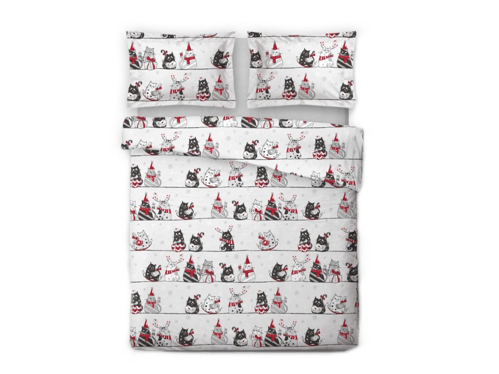 Povlečení Mikroflanel Kočky na střeše je ideálním dárkem pro milovníky koček a zimní pohody. Vnese do ložnice radost, teplo a sváteční náladu.