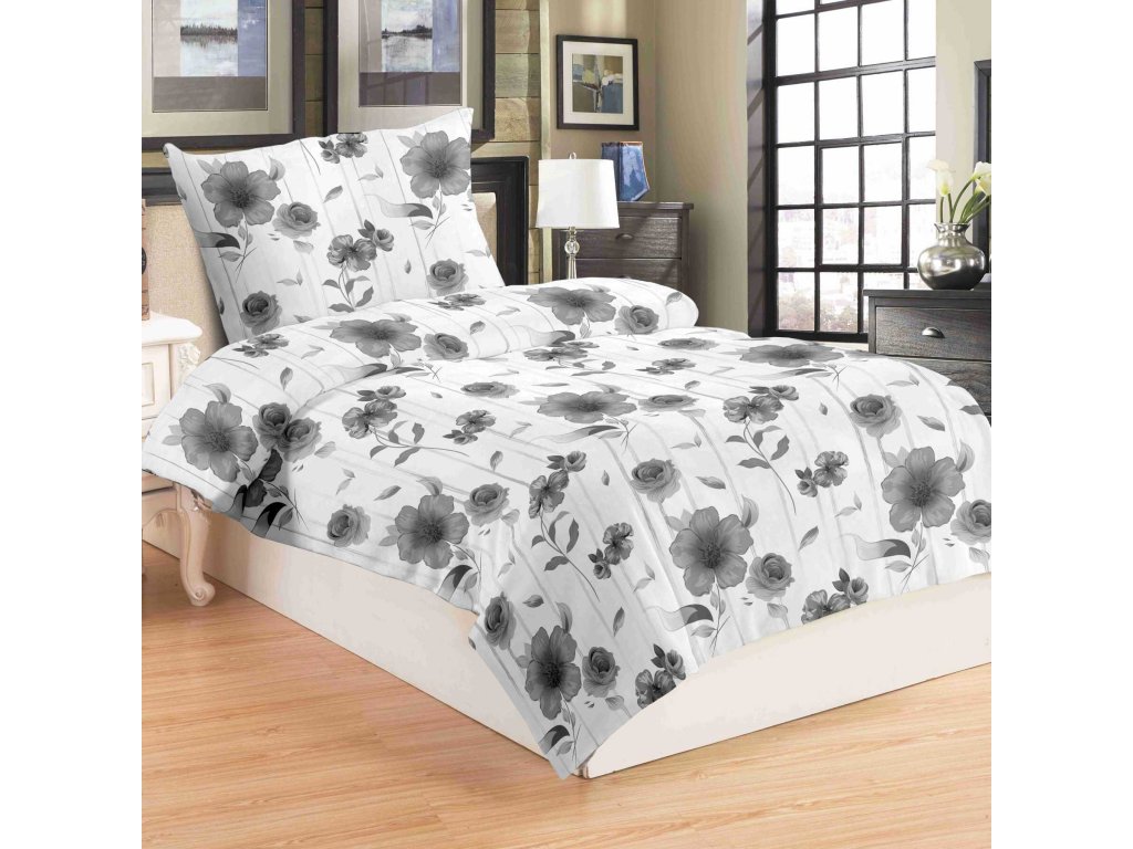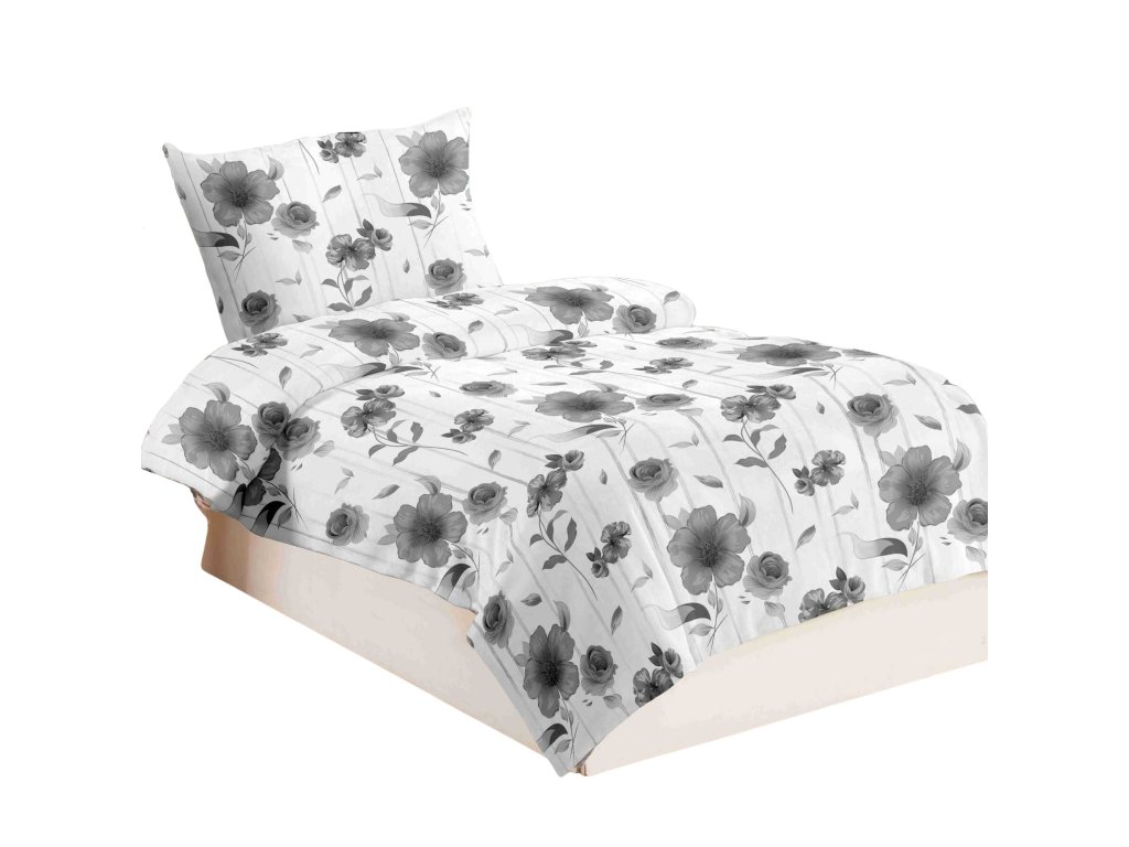 Povlečení mikroflanel Šedobílá kytka