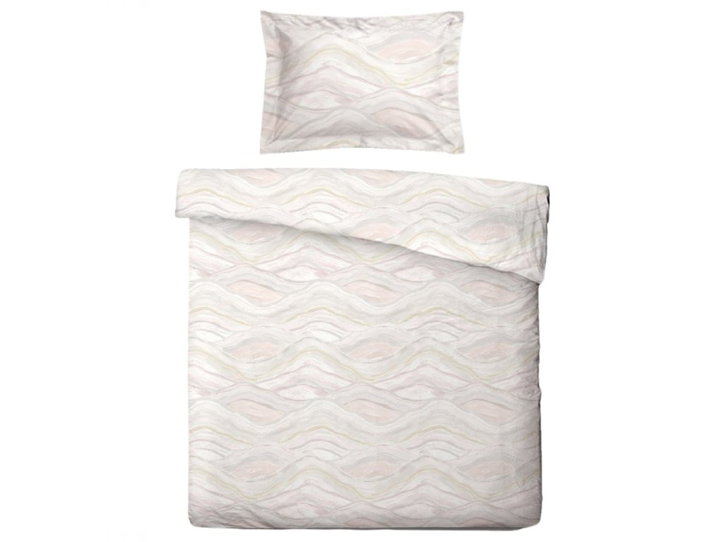 Povlečení Mikroflanel Ticho značky SLEEP WELL® navozuje atmosféru klidu a pohody. Jemné vlnky v pastelových tónech bílé, béžové a růžové působí harmonicky a elegantně.
