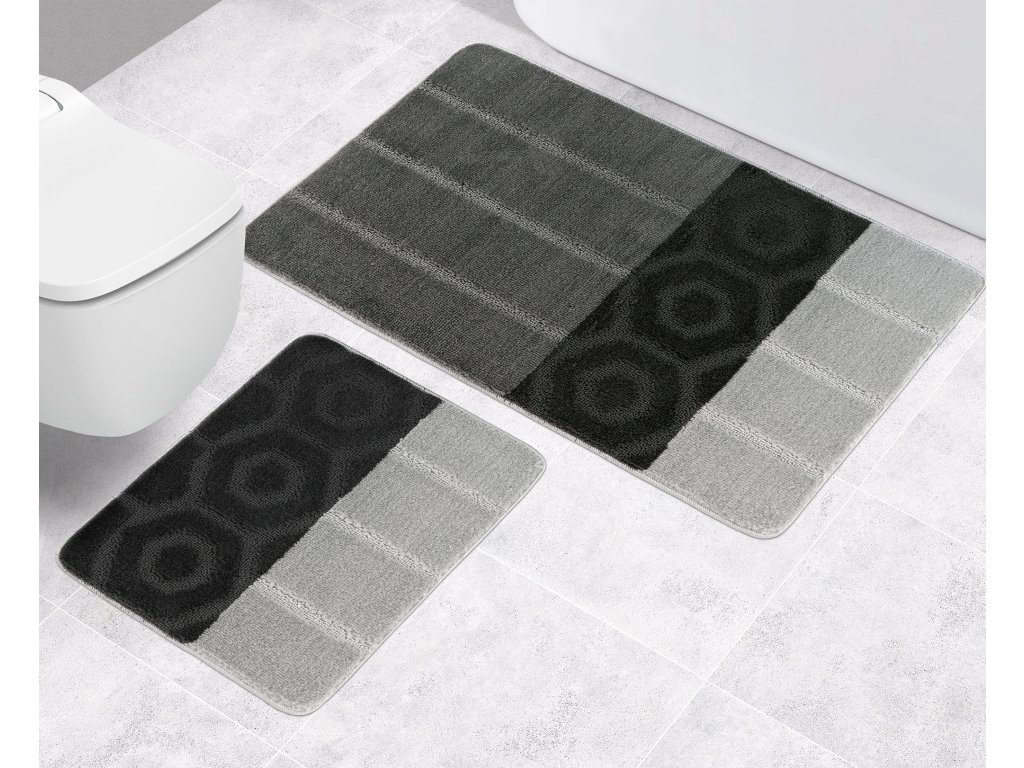 Koupelnové předložky nabízíme v mnoha barevných variacích, rozměr předložky před WC je 60x50cm, předložka je bez výkroje na WC. Možno barevně dokompletovat s předložkou před vanu 60x100cm. Rub předložek je tvořen povrchem z latexového nátěru, předložky nekloužou po koupelnové podlaze.