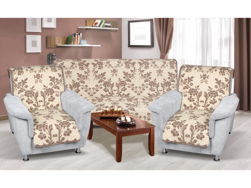 Přehoz na sedací soupravu Karmela 3+1+1 béžový květ