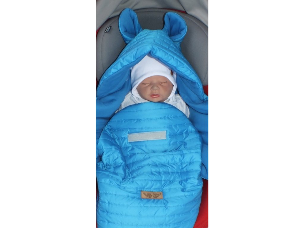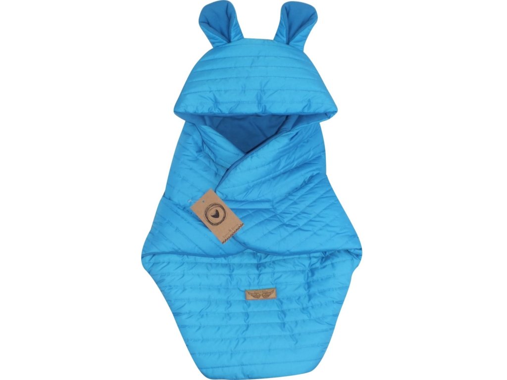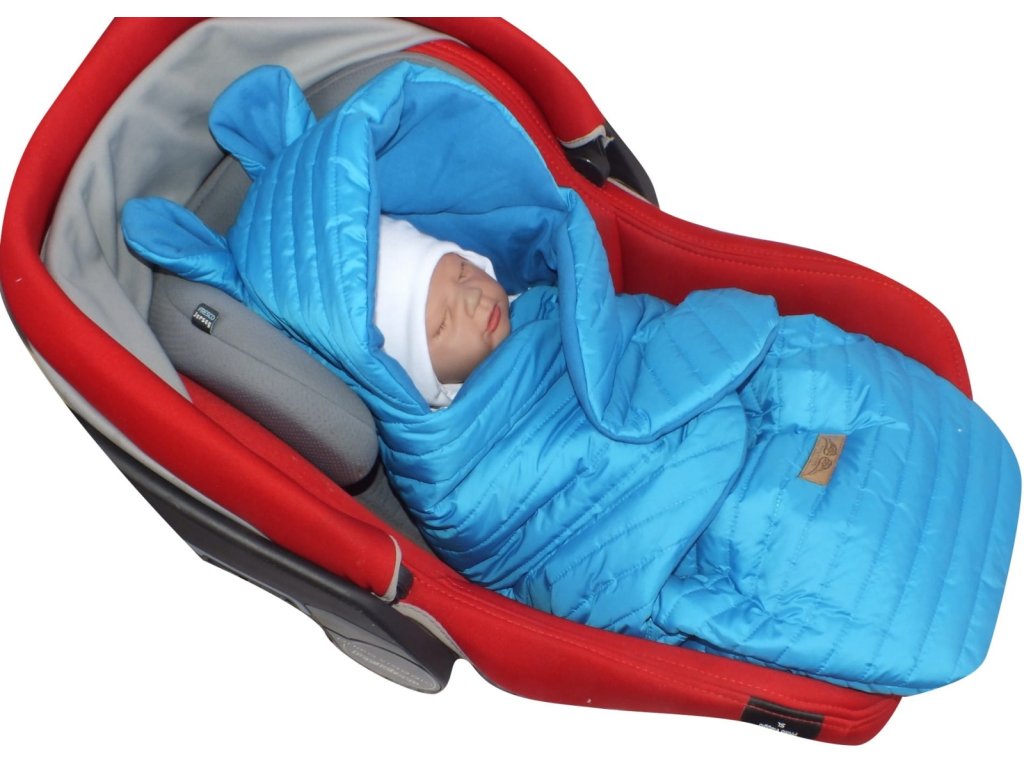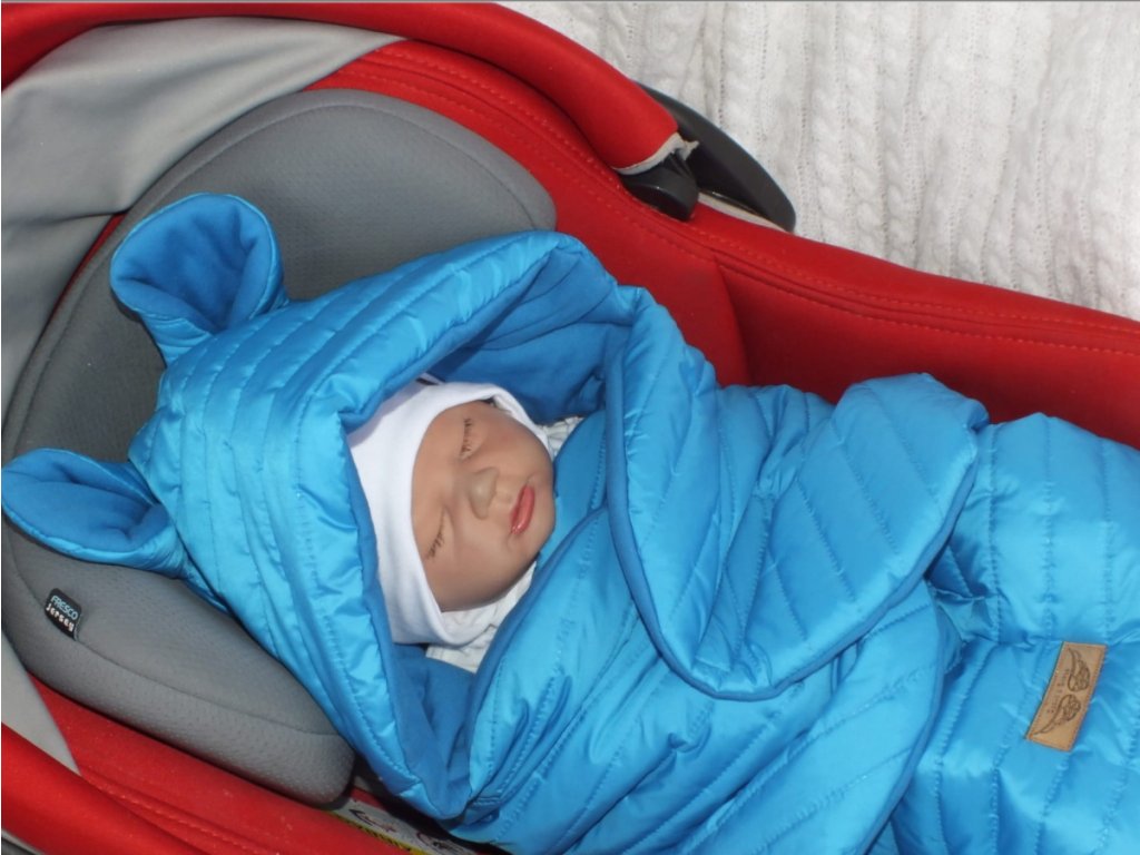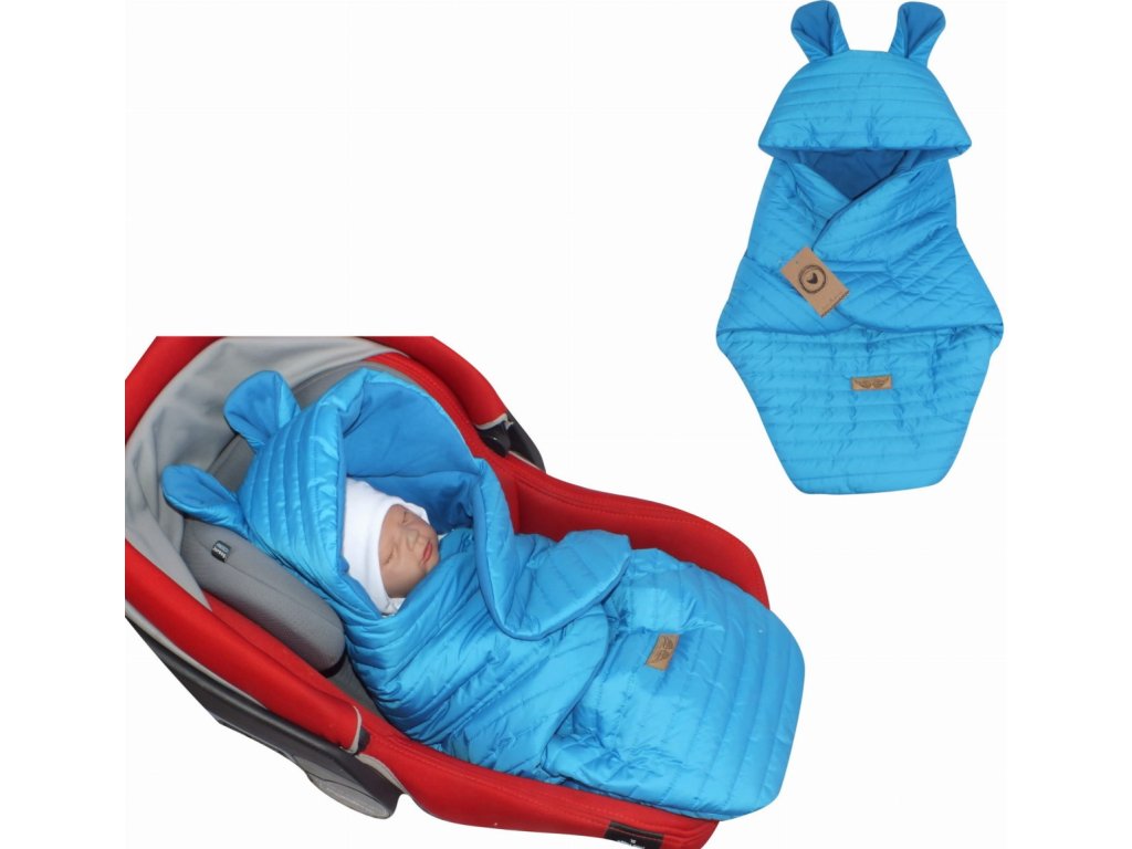 Prošívaný fusák do autosedačky s kapucí a bavlněnou podšívkou, modrá