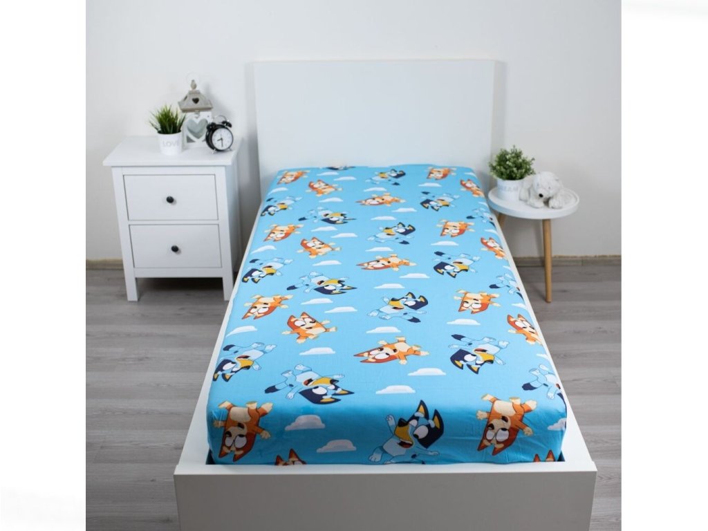 Skvělý doplněk k povlečení Bluey – prostěradlo „Bluey 004“ doladí veselou atmosféru v dětském pokoji!