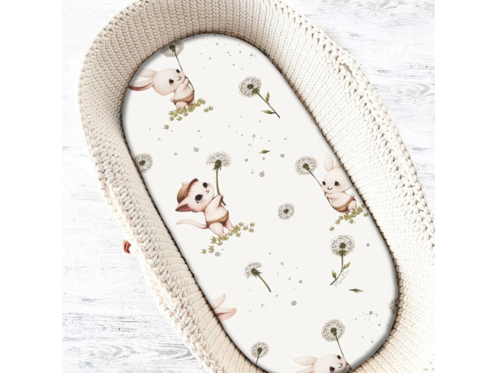 Prostěradlo do kočárku, koše, bavlna, Kocourek a pampeliška - bílá