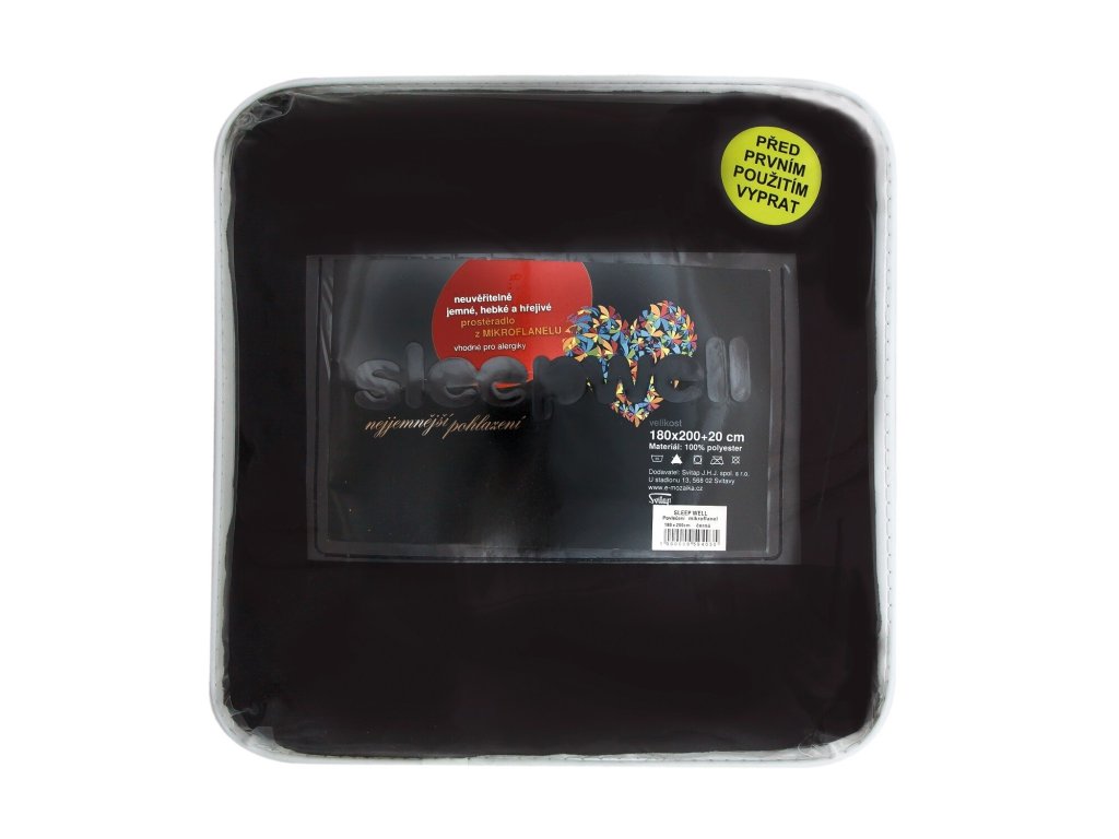 Prostěradlo mikroflanel černá 90x200x20 cm