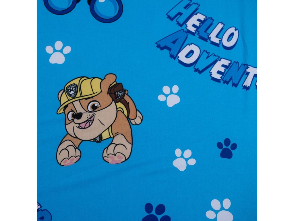 Modrý podklad zdobí obrázky Chase, Marshalla a Rubblea, doplněné o tlapky a další hravé detaily. Ideální pro malé fanoušky psích záchranářů.