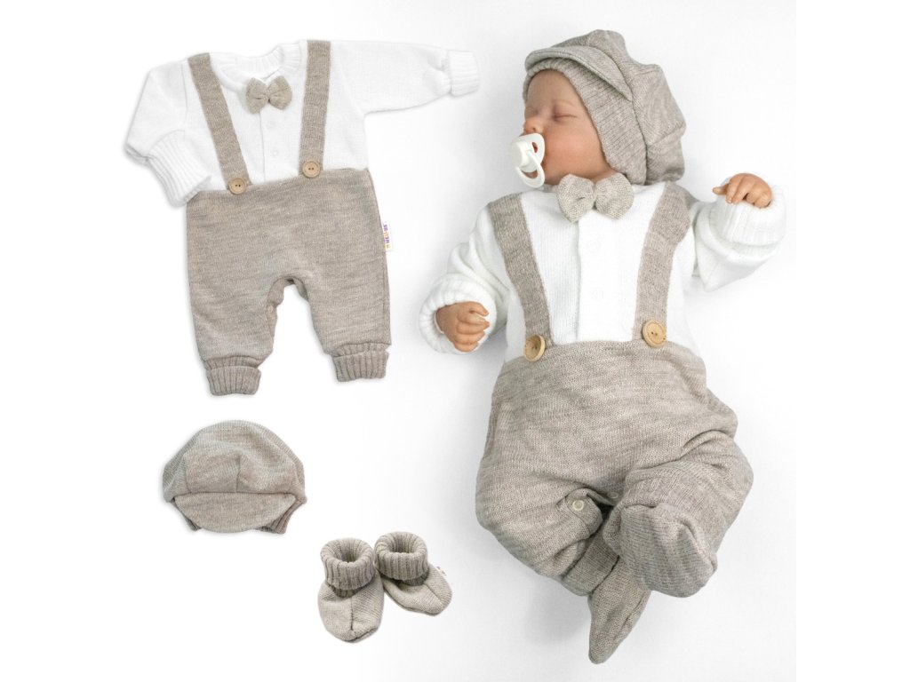 Rostoucí pletený overálek 3D Hand Made malý Elegán - béžový, bílá