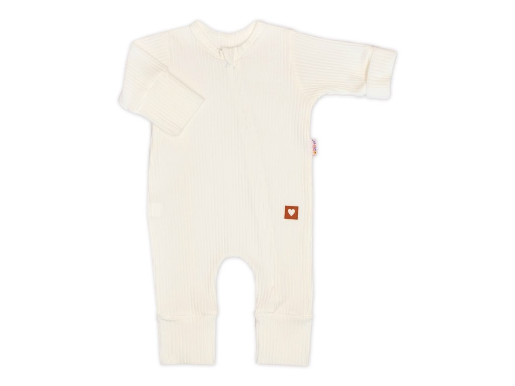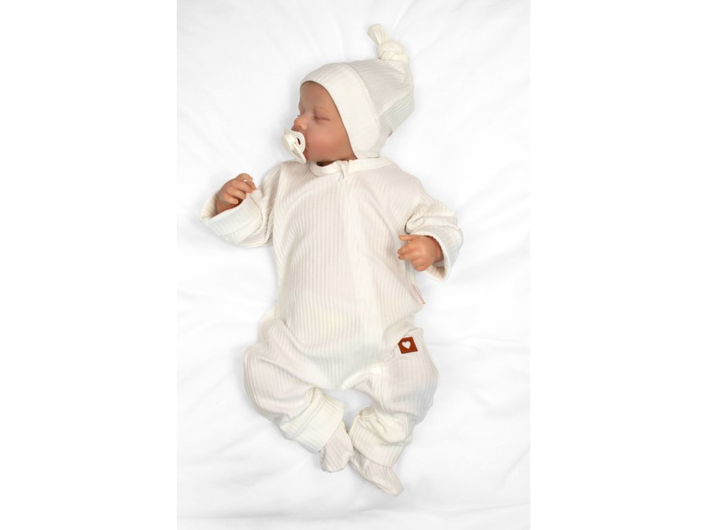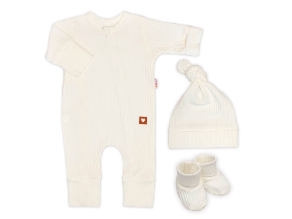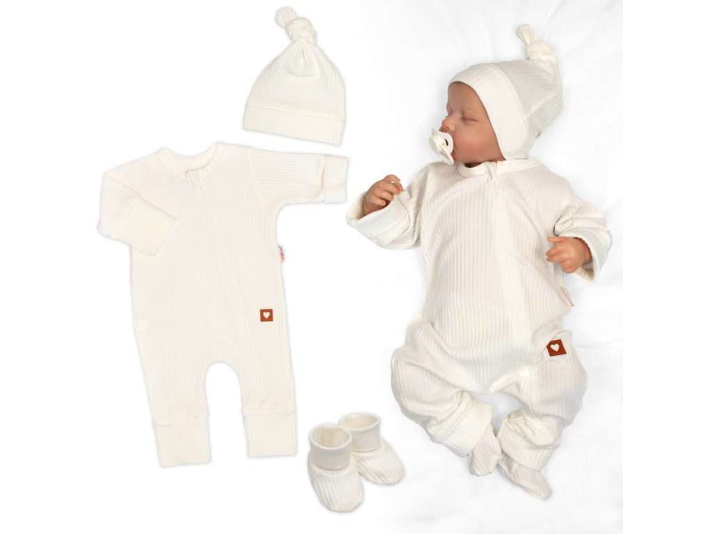 Rostoucí žebrovaný overálek, čepička a botičky, 3D, Nature - ecru