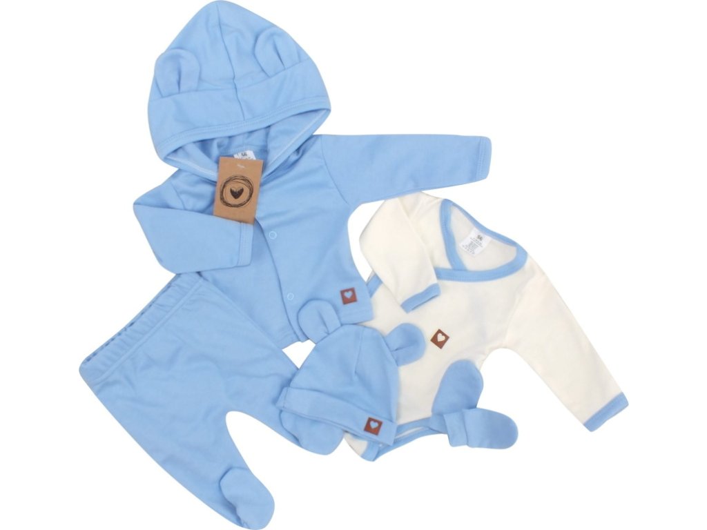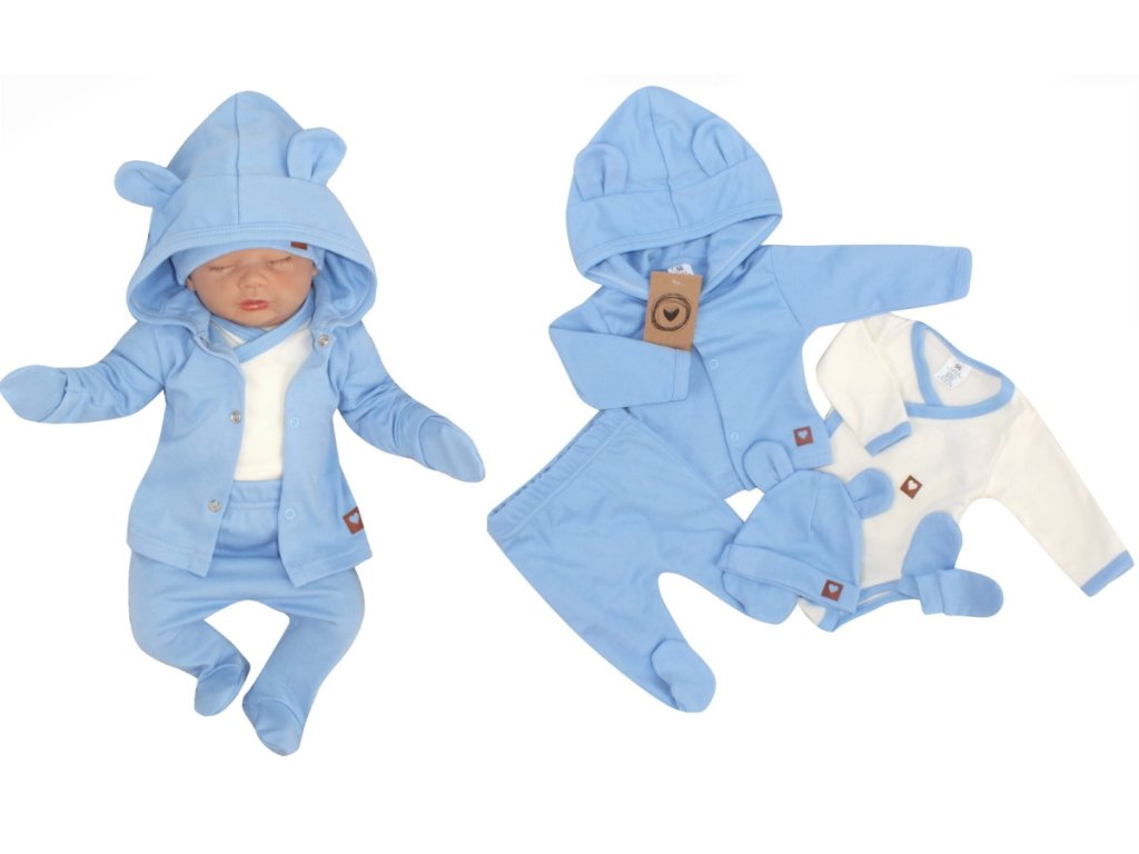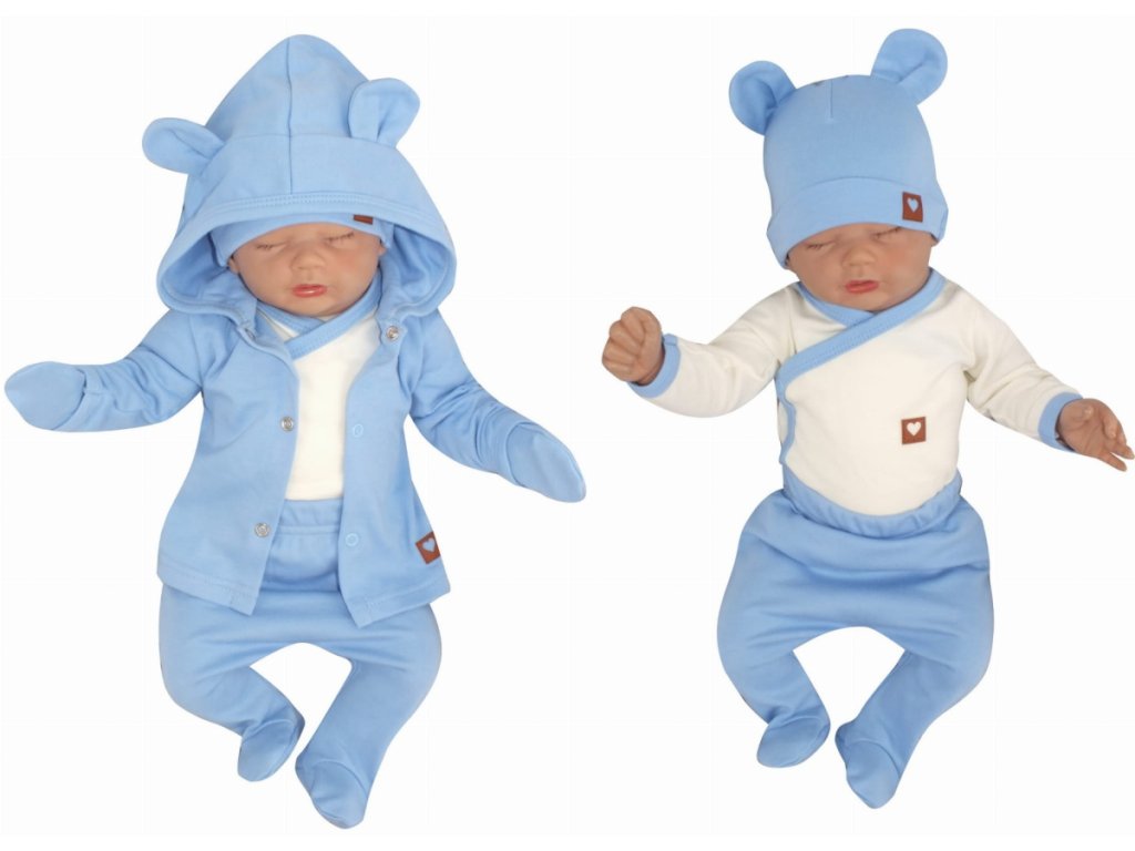 Sada do porodnice 5D, body, polodupačky, kabátek, čepička, rukavičky - modrá