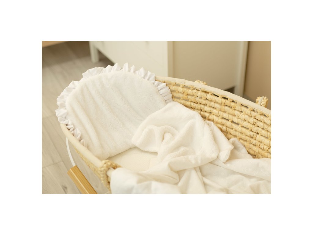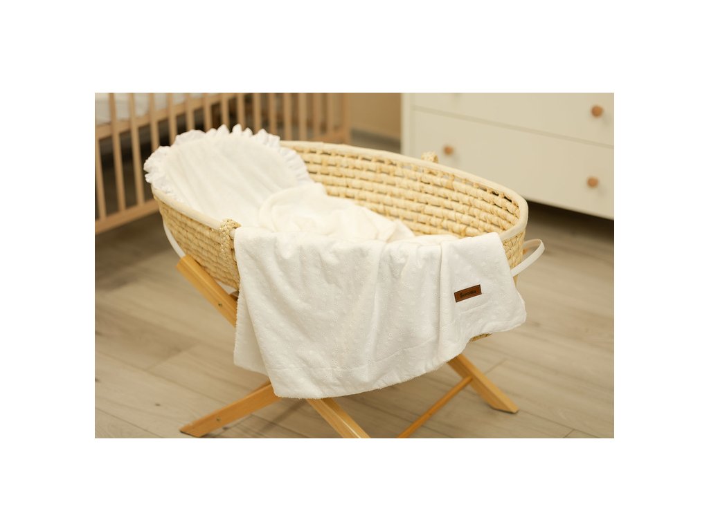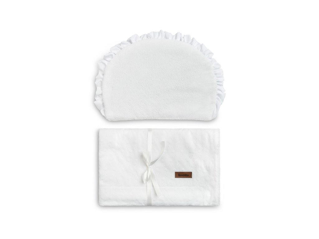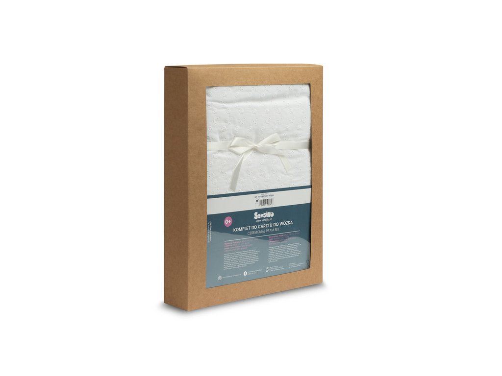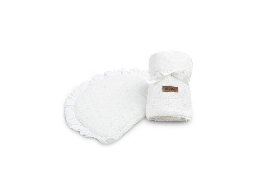 Sada ke křtu, 2D - deka, polštářek - bílá. Dodejte křtu vašeho děťátka eleganci s naším luxusním bílým kompletem do kočárku, který zahrnuje polštářek a lehkou přikrývku. Jedna strana sady je vyrobena z kvalitní bavlny s jemným anglickým vyšíváním, zatímco druhá strana je z měkkého plyše, který něžně zahřeje vaše miminko. Polštářek je naplněn lehkým, antialergenním silikonovým vláknem, které zůstává stabilní během používání. Přikrývka je bez další výplně, což ji činí lehkou, zatímco plyšová vrstva poskytuje dostatečnou ochranu před chladem. Rozměry: Polštářek: 40 x 29 cm (± 2 cm). Přikrývka: 78 x 98 cm (± 2 cm). Pokyny k údržbě: Ruční praní na maximální teplotu 30°C. Nebělit. Nečistit chemicky. Žehlit z vnější strany při maximální teplotě 110°C. Složení materiálu: Vnější vrstva: 100% bavlna Vnitřní vrstva: 100% polyester Tento elegantní křestní komplet do kočárku je perfektní volbou pro rodiče hledající stylovou a funkční výbavu pro své nejmenší. Zajistěte svému dítěti maximální pohodlí a bezpečnost s touto nádhernou sadou, která spojuje kvalitu a estetiku.Doplňkové parametry