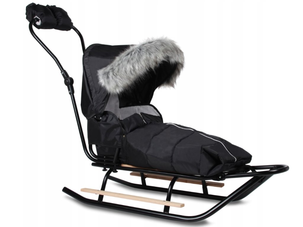 Sáňky DELUX s kompletním vybavením + rukávník zdarma - černý, šedý