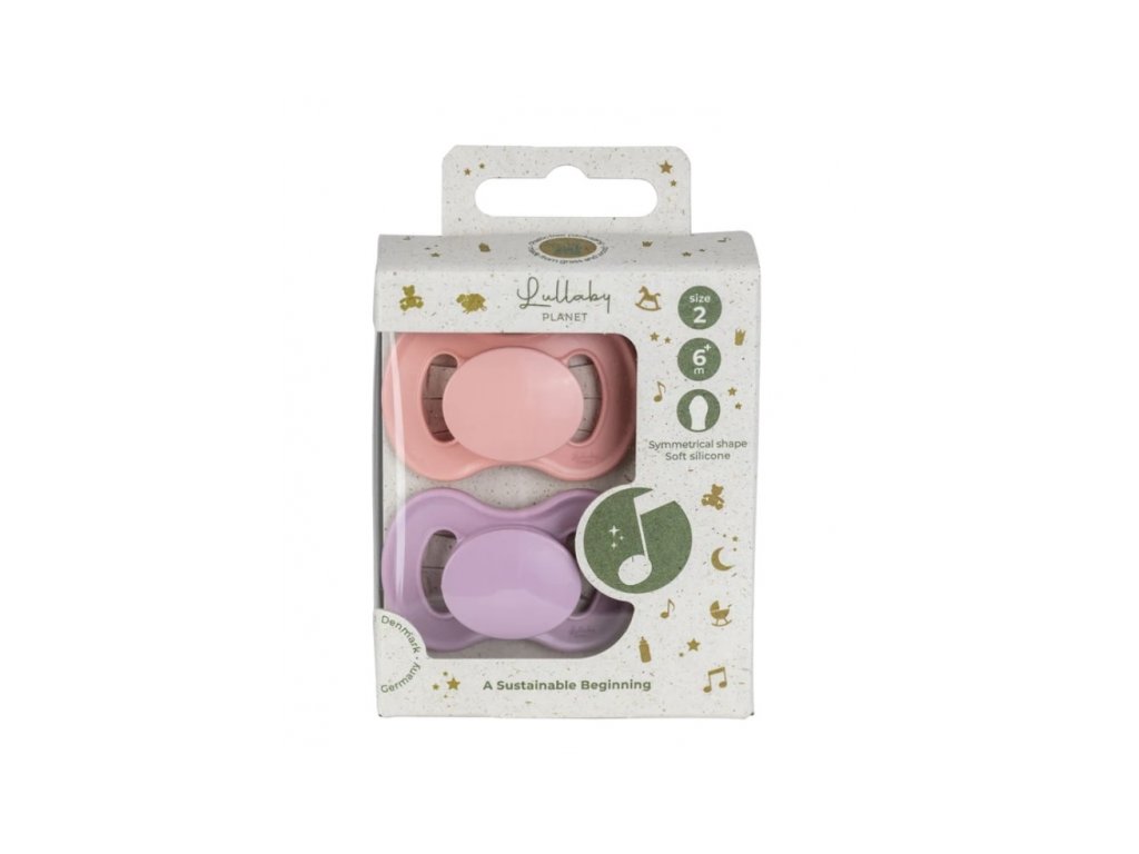 Šidítko, dudlík, silikon, symetrický, 2ks, Lullaby Planet, 6m+, růžová/lila