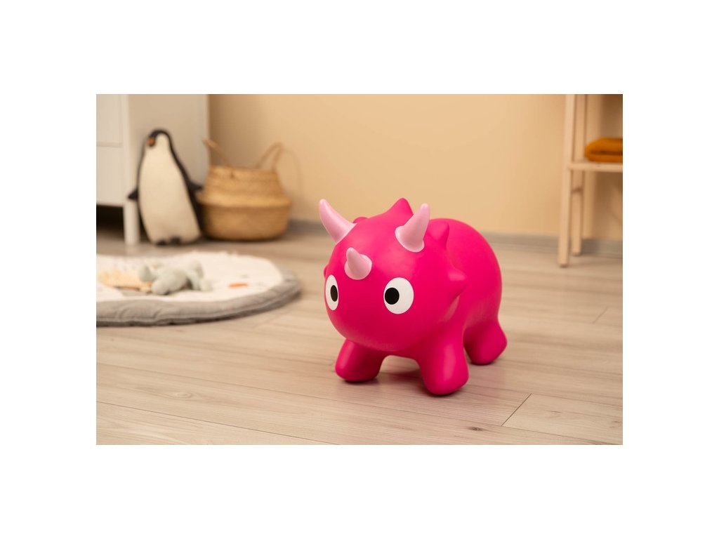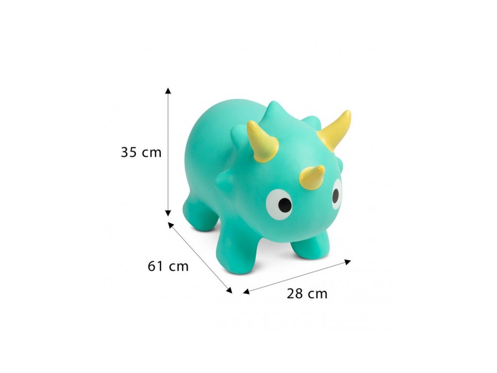 Tento roztomilý triceratops, s rohy sloužícími jako praktická držadla, je nejen zábavný, ale také bezpečný pro děti.
