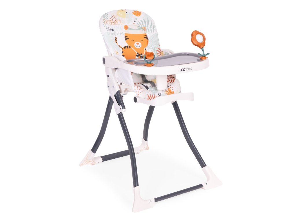Skládací dětská jídelní židlička s hračkami Tygřík